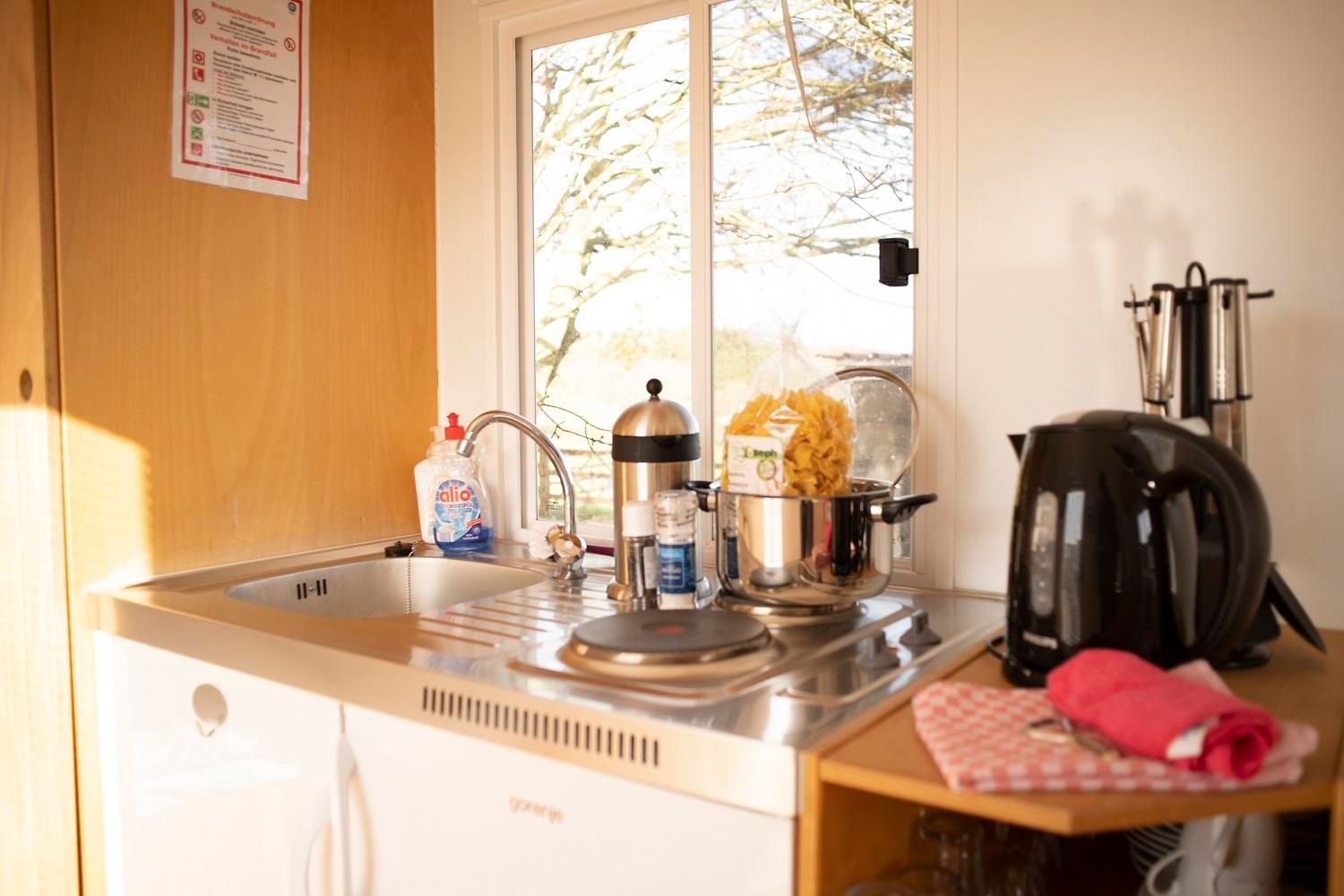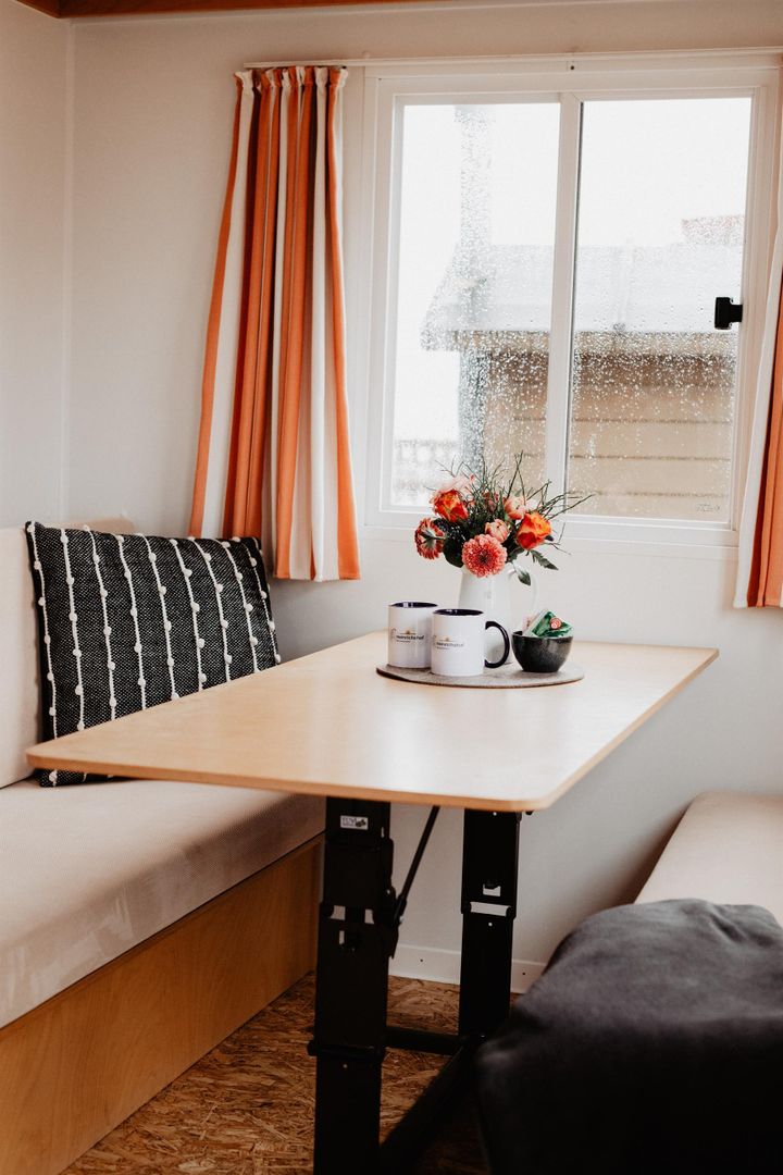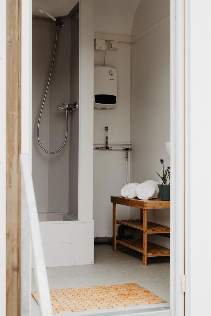 Un espace de vie et de couchage confortable et étonnamment charmant pour 4 personnes par roulotte de chantier. En plus d'un lit double et d'un coin salon qui peut être transformé en un deuxième lit double en un tour de main, une petite cuisine en fait également partie. Toutes les roulottes de chantier sont équipées d'un chauffage. Des possibilités de douche et de lavage ainsi que des toilettes suédoises bio à compost sont également disponibles.