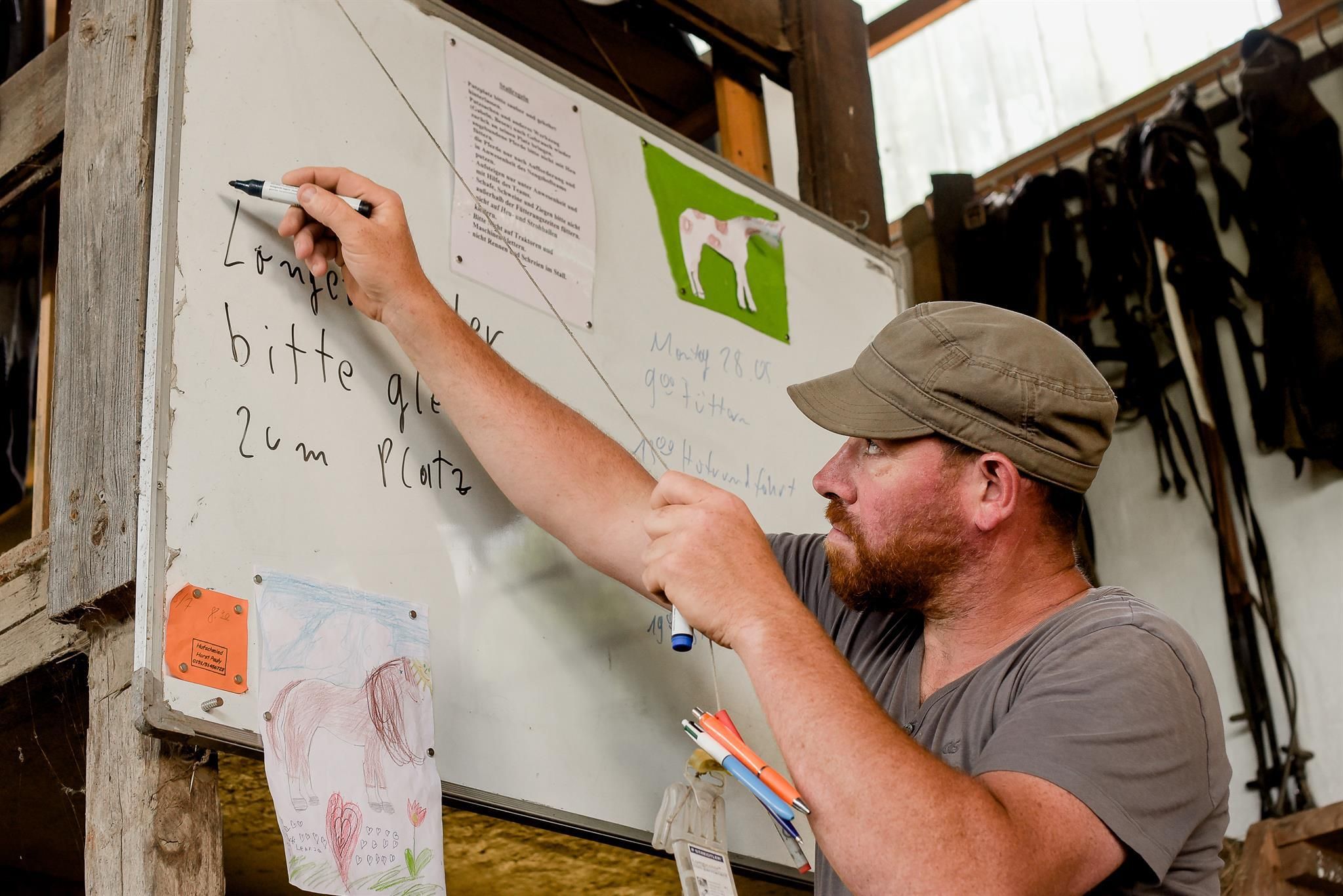 Mais à la ferme, vous pouvez aussi participer au désherbage des fraises, au canardage des pommes de terre ou au nettoyage de l'écurie - dans une telle ferme, il y a toujours quelque chose à faire. Au printemps, aller au pâturage avec le tracteur pour réparer la clôture ou délimiter de nouveaux enclos. En été, aider à la récolte du foin ou parcourir ensemble les champs pour découvrir les différentes variétés de céréales. En automne, partir en char à bancs vers le verger pour ramasser des pommes et ensuite presser du jus et faire cuire des crêpes sur le feu. En hiver, se rendre dans la forêt pour faire du bois et sortir les arbres de la forêt à la force des chevaux.