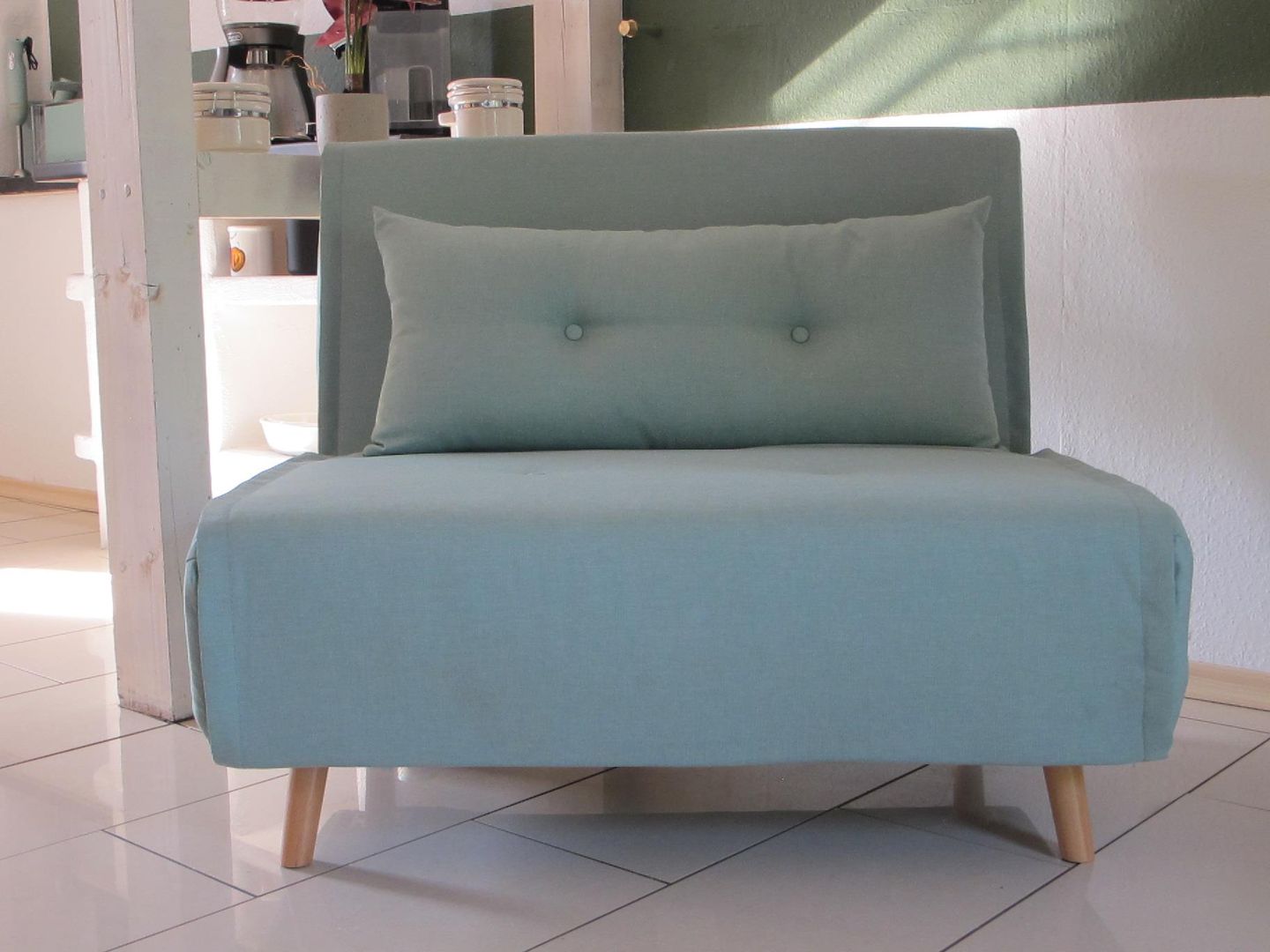 Dans le salon, vous trouverez un fauteuil-lit dépliant sur lequel vous pourrez passer des heures agréables devant le poêle à bois (Bullerjahn).