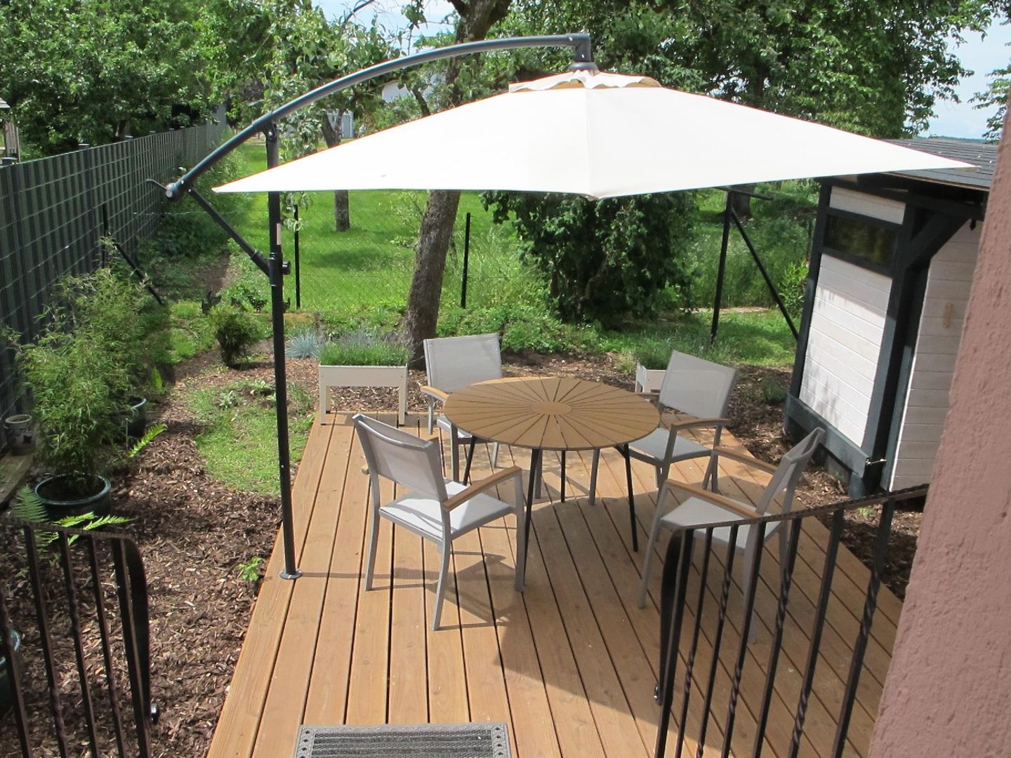 Le terrain est entièrement clôturé et convient donc pour des vacances avec un chien.