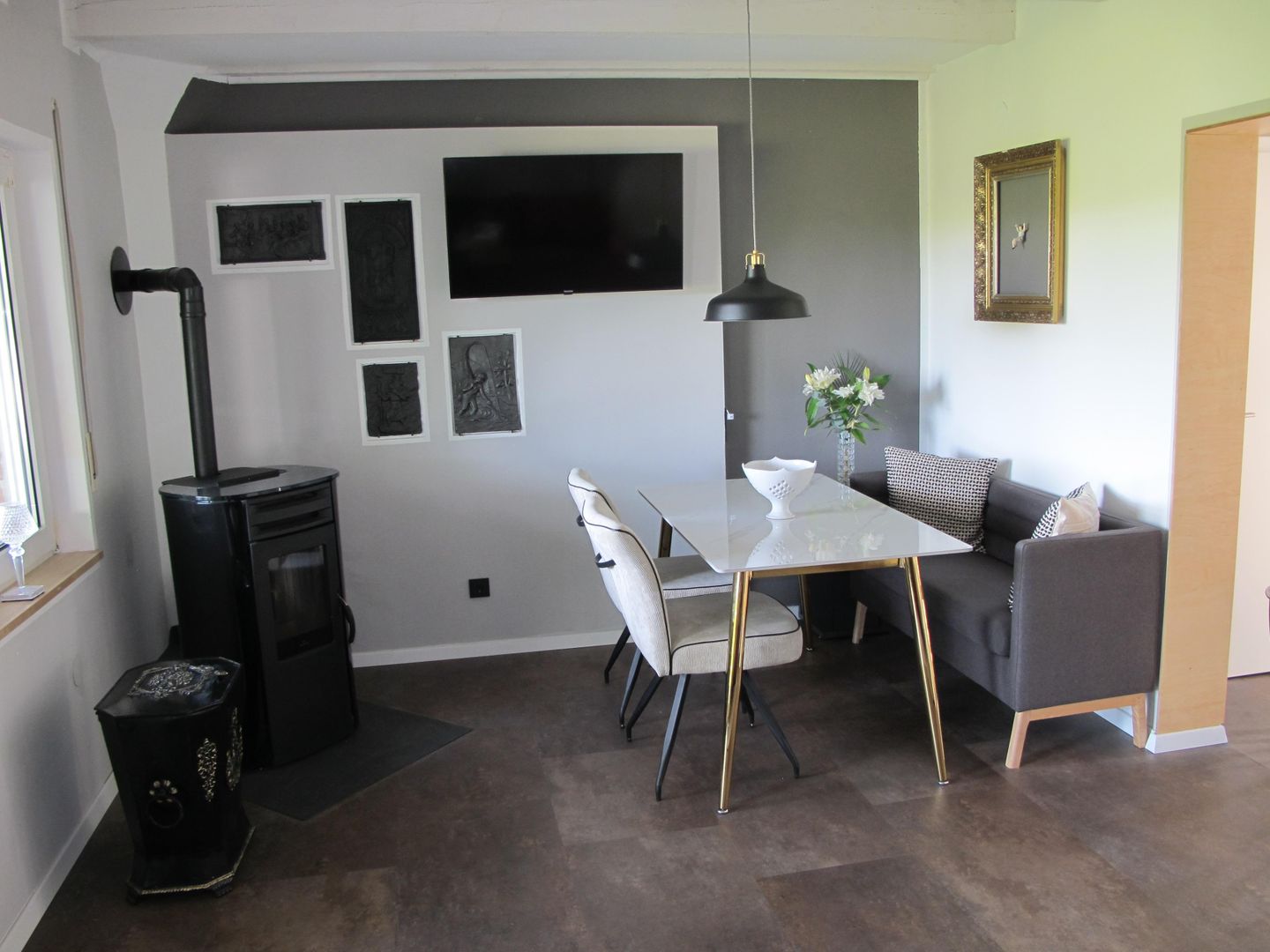 Au rez-de-chaussée, un salon et une salle à manger ouverts et lumineux avec un poêle à pellets pour une chaleur agréable les jours de fraîcheur vous attendent. Une troisième télévision est également disponible et la cuisine moderne est parfaitement équipée (y compris four, lave-vaisselle, micro-ondes, etc.). Les toilettes séparées pour les invités, avec machine à laver et sèche-linge, sont très pratiques.