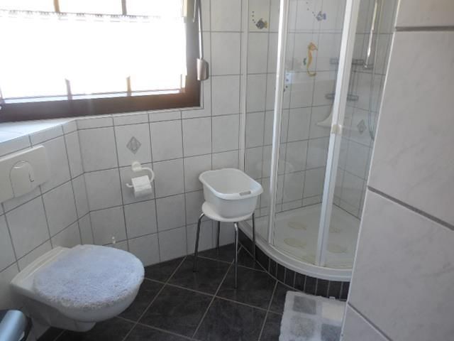 1 douche / WC / lavabo avec sèche-cheveux, miroir cosmétique, serviettes.