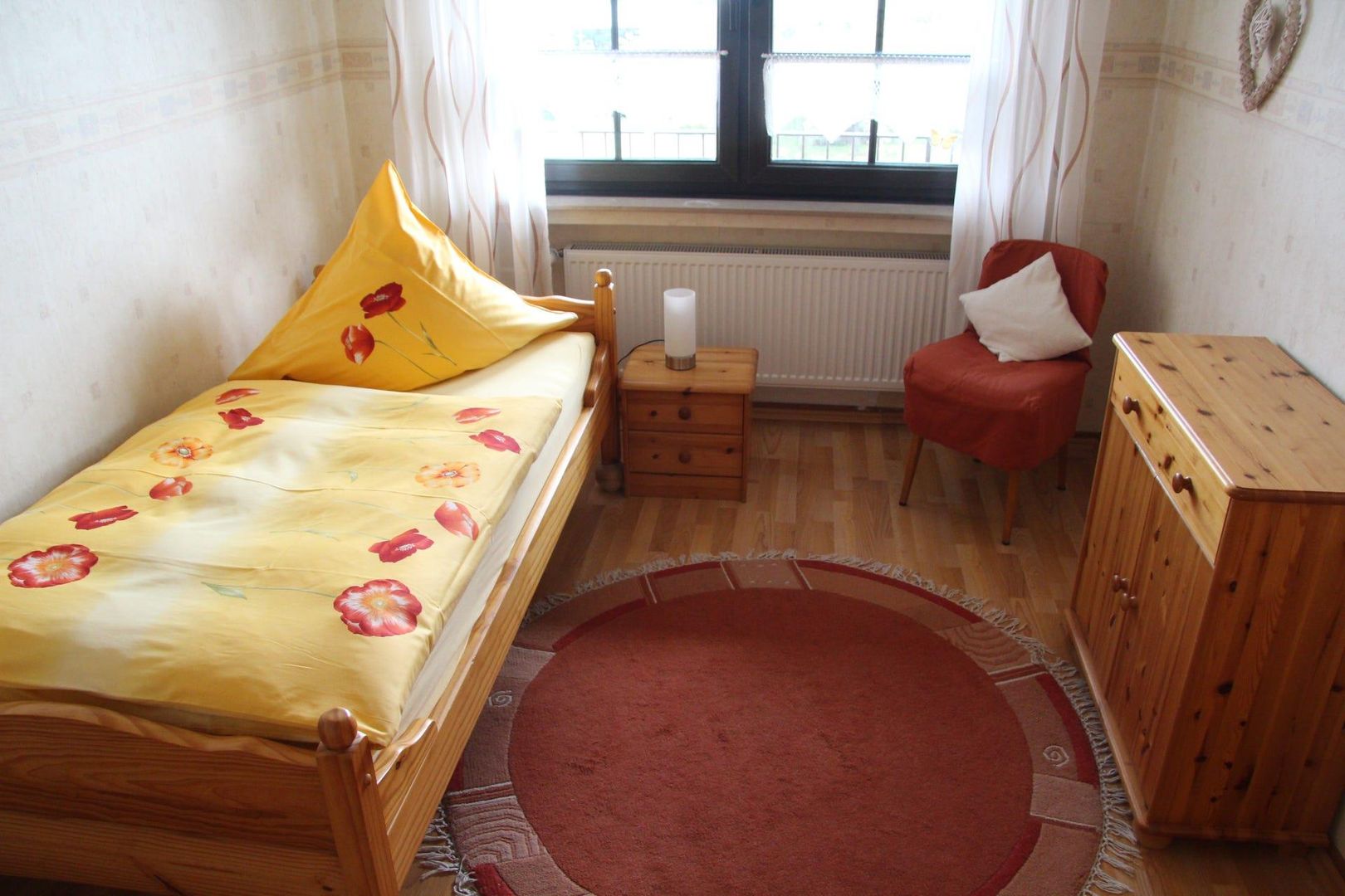 Bel appartement de vacances, adapté aux enfants, entièrement équipé, avec vue sur la campagne. Situation centrale, près de la frontière belge/luxembourgeoise. Bonnes possibilités de randonnées. Entrée séparée, place pour 5 personnes, radio, TV satellite et machine à laver disponibles.