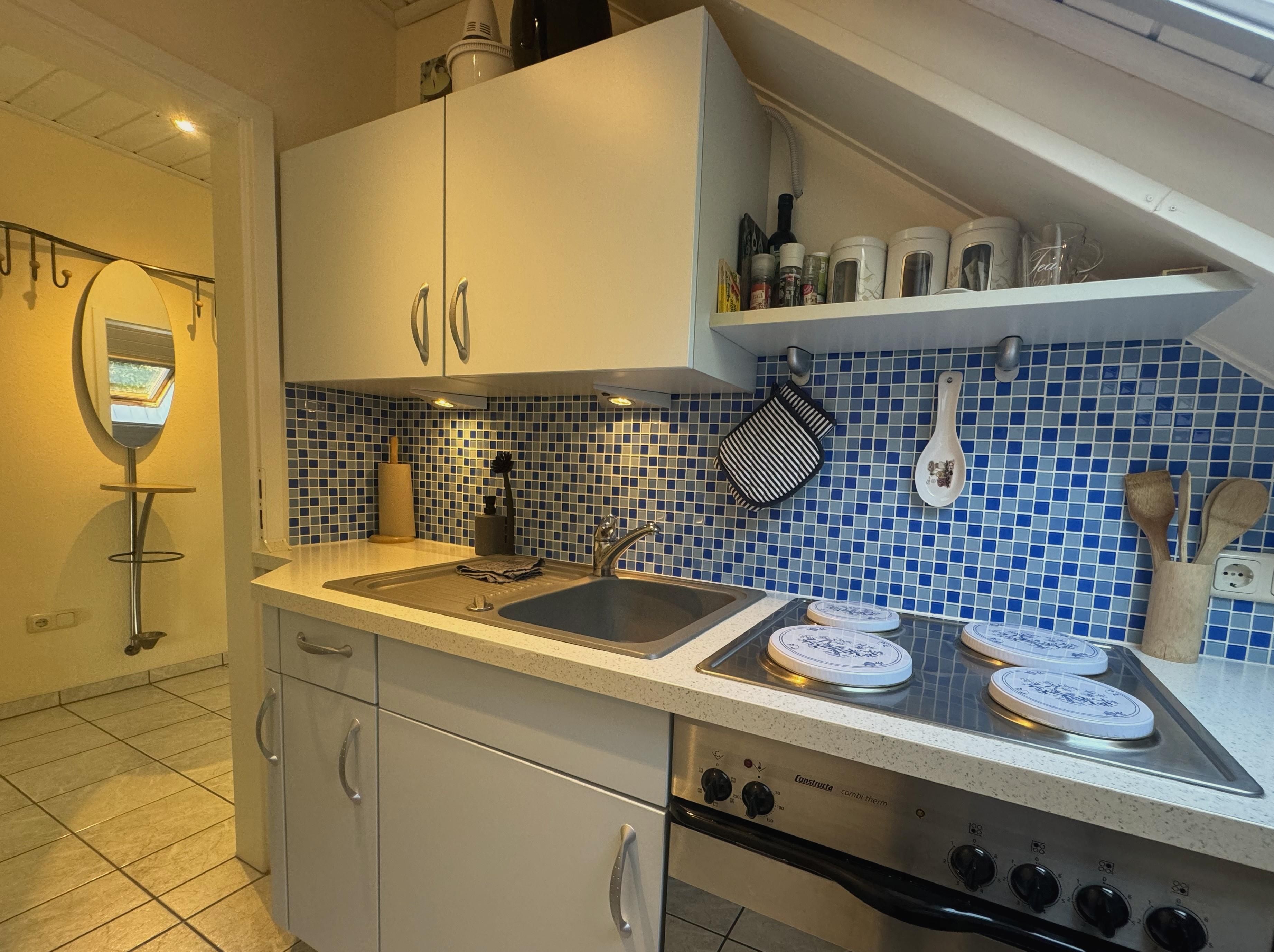 Depuis le balcon, vous avez la plus belle vue sur le village, sur le magnifique paysage montagneux de l'Eifel. L'appartement dispose de deux chambres à coucher avec un lit double king-size (2 mètres sur 2) et deux lits simples.