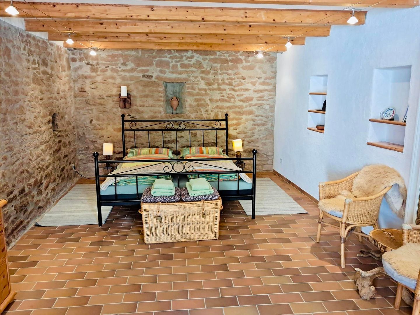Le deuxième appartement, notre "Scheune Vulkaneifel", se trouve dans l'annexe et est idéal pour les célibataires et les couples d'une ou deux personnes. Dehors, il y a une petite terrasse pour s'asseoir.