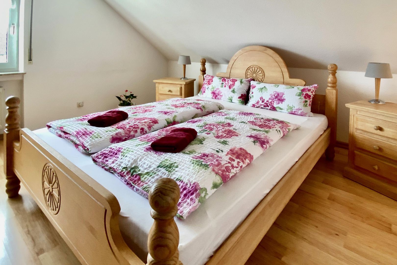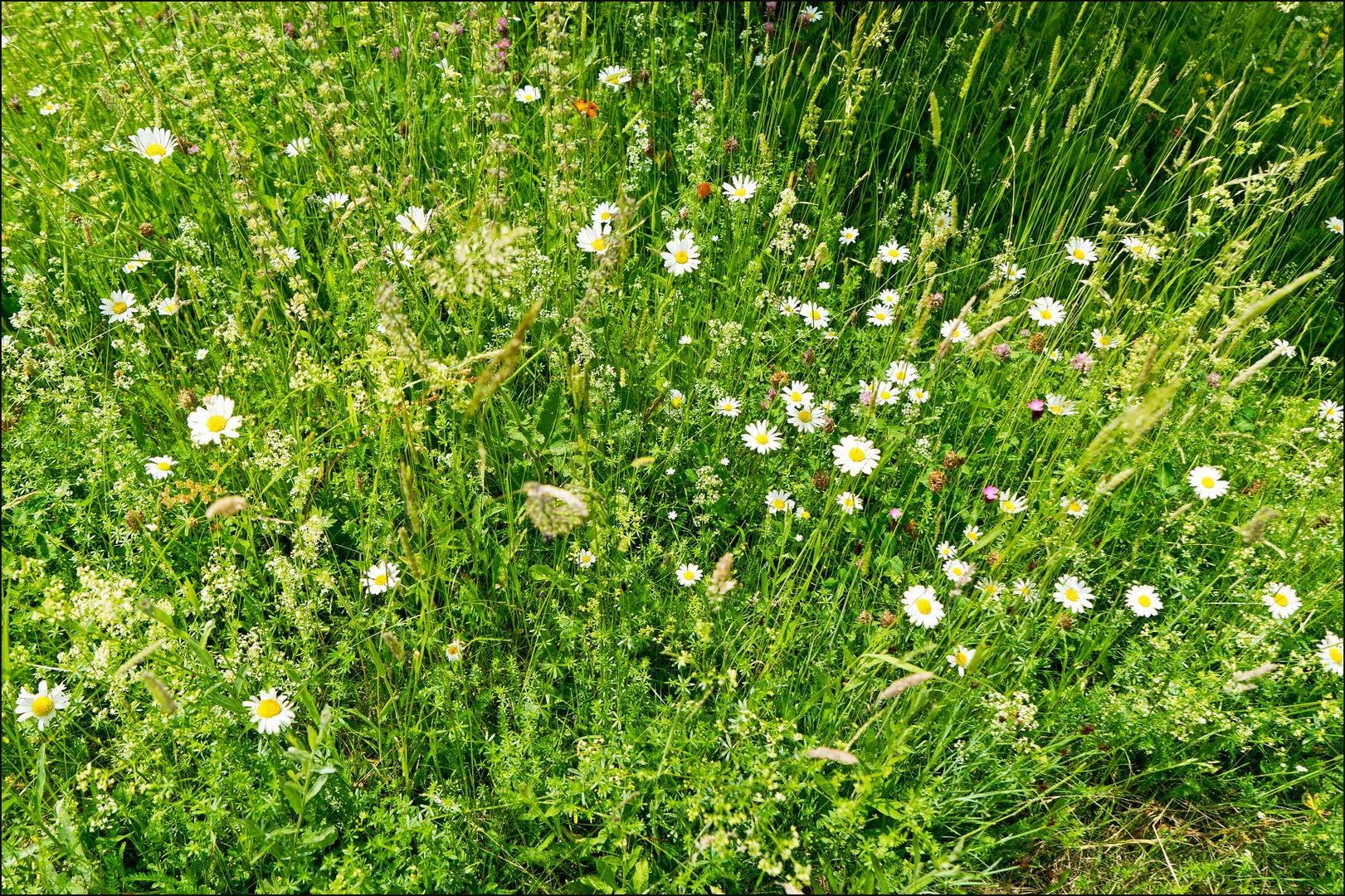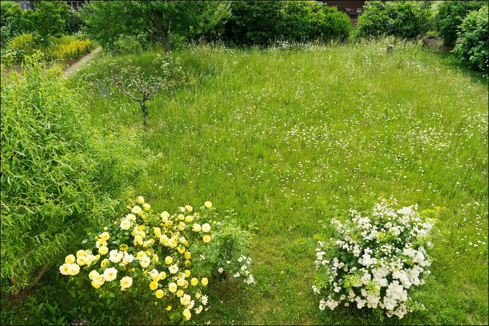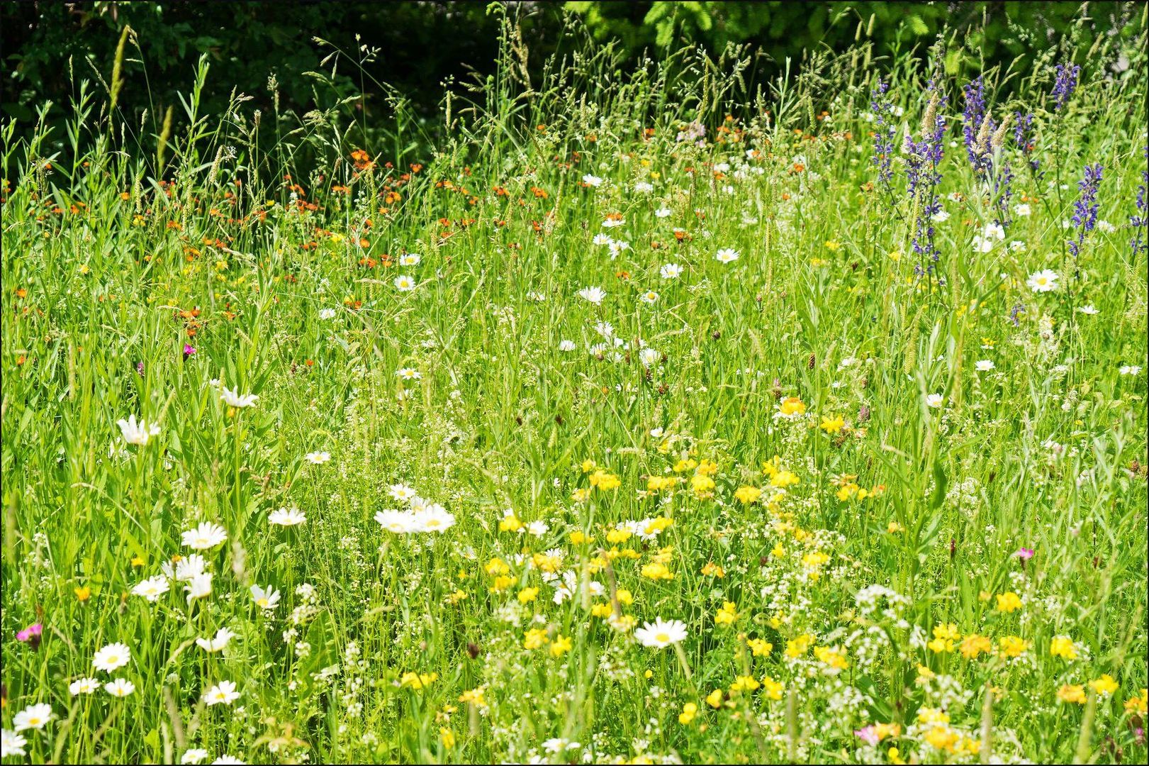 Nous avons donné ce nom à notre maison de vacances parce que nous nous réjouissons chaque année de la floraison multicolore de la prairie qui entoure la maison. C'est avec plaisir que nous vous ferons partager cette diversité naturelle, qui est également encadrée par la clôture végétale du terrain. Avec ses trois chambres à coucher, ses deux salles de bains, ses toilettes d'invités ainsi que sa cuisine et son salon lumineux, la maison indépendante offre beaucoup de place à nos hôtes. Les toilettes d'invités, la cuisine et le salon partent du couloir central, qui donne un accès direct à la terrasse. Des meubles de jardin sont disponibles et une marquise protège du soleil.