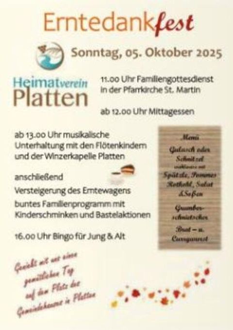 Fête des récoltes le dimanche 05 octobre 2025 à Platten