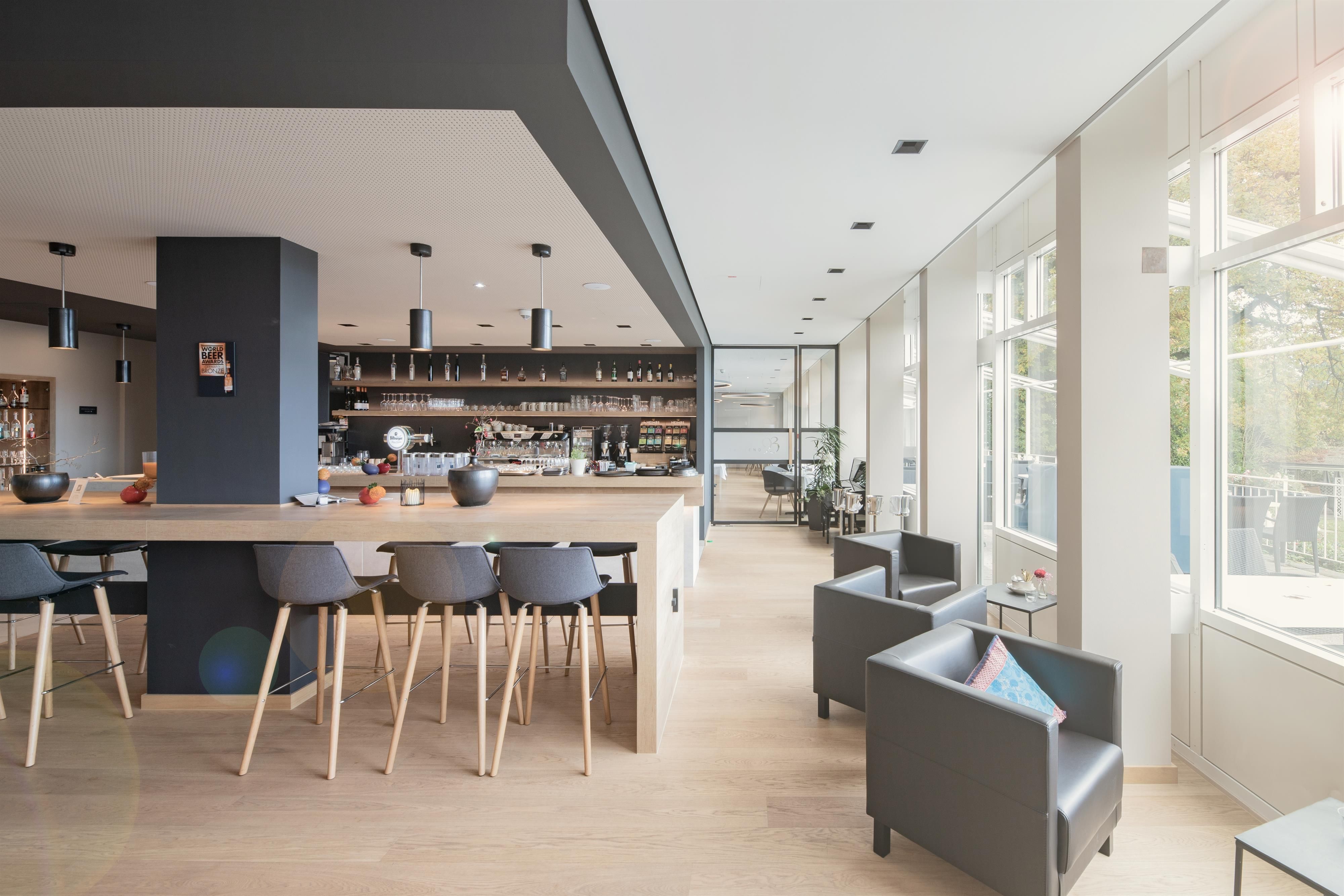 Die Lobby-Bar im Seehotel Maria Laach präsentiert sich modern, großzügig, hell und aufgeräumt – ein Ort zum Wohlfühlen und gepflegten Verweilen. Durch die großen Panoramascheiben geht der Blick auf die Terrasse und die einzigartige Natur des Laacher Sees. Ein ausgesuchtes Angebot an feinen Weinen erfreut Weinliebhaber, für Freunde eines gepflegten Bieres gibt es das Laacher-Klosterbier. Die Rezeptur dazu wurde in einer umfangreichen Verkostung gemeinsam mit den Laacher Mönchen entwickelt. In stimmungsvollem Ambiente können Sie hier Drinks und kleine Gaumenfreuden genießen. Bei schönem Wetter ist die Terrasse geöffnet.