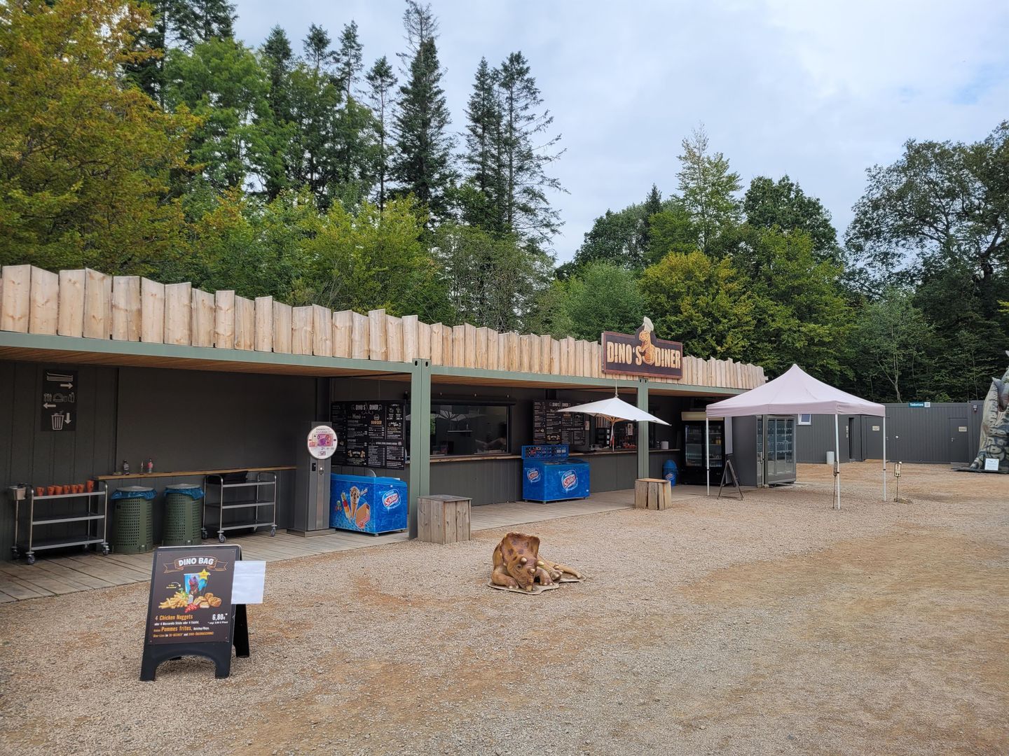 In Dino's Diner, der Gastronomie im Dinosaurierpark Teufelsschlucht, gibt es Snacks und Gerichte für den kleinen und den großen Hunger, für kleine und große Besucher, für Fleisch- und für Pflanzenfresser: Pommes frites und Chicken Nuggets, Burger und Bratwurst, Tostis und Falafel, viel Vegetarisches und Veganes und alles auch als Menü. Dazu gekühlte Getränke, Eis, Kuchen und Gebäck und Kaffeespezialitäten von Mondo del Caffè, der Kaffeerösterei im nahegelegenen Echternach.