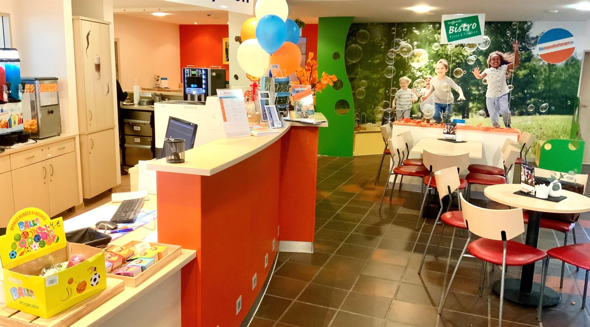 Das gemütliche Bistro in der Jugendherberge lädt zum geselligen Beisammensein ein und bietet die willkommene Gelegenheit, sich zu entspannen und eine schöne Zeit zu genießen. Im Bistro trifft man sich in lockerer Atmosphäre bei Drinks, Kaffee-Spezialitäten und Snacks und lässt den Tag relaxed ausklingen. Bistro-Karte