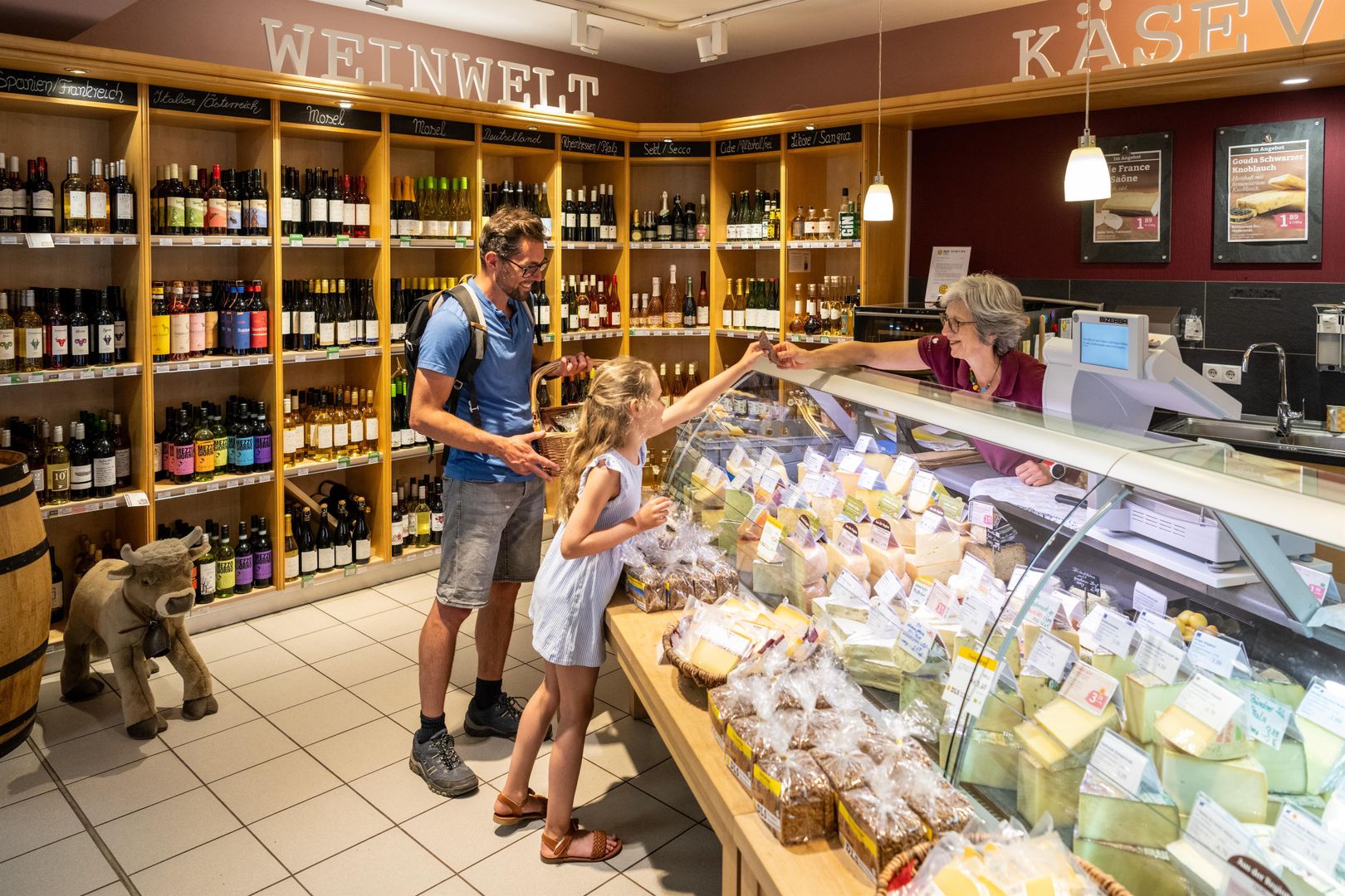 Das zertifizierte Bio-Sortiment ist mit Wein, Säften und Gewürzen, Körperpflege und vielem anderem mehr als komplett, die Großzügigkeit des gutseigenen Ladens macht es möglich. Hier lässt es sich in Seelenruhe stöbern und schauen, was der ganzen Familie schmeckt.