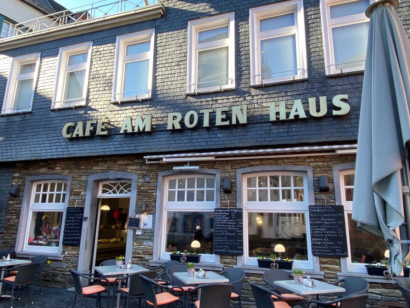 Wir , das Café Am Roten Haus in Monschau, sind eine kleine Konditorei mit hauseigener Backstube und direkten wunderschönen Blick auf das Rote Haus.