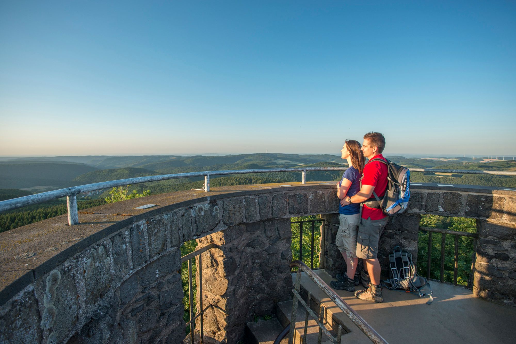 De EIFELLEITER wordt verder beklommen, het pad leidt naar grote hoogten, maar je voeten blijven verbonden met de aarde, je voelt de kracht van het vulkanische verleden.Langs de hoefijzerkrater van Bausenberg en het Rodder Maar, over oude Romeinse paden door het avonturenbos Steinrausch en op de laatste etappe wacht de Hohe Acht op de wandelaars. Imposante rotsformaties zullen je verbazen. Het uitzicht vanaf de Kaiser Wilhelmstoren, hoog op het hoogste punt van de Eifel, maakt alle inspanningen tijdens de beklimmingen goed. Daarna gaat het bergafwaarts langs de Eifelladder naar het levendige stadje Adenau.