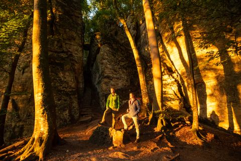 Meerdere dagen achtereen wandel je op verschillende "lussen" het hart van het avontuur van de ongerepte natuur in. Hotel Restaurant Hüllen in Barweiler biedt een rustige en gastvrije accommodatie. Na een goede nachtrust en een smakelijke maaltijd kun je de rondwandelingen Dörferblick, Müllenwirft en Wirftbach volgen door een streng beschermd leefgebied voor zeldzame dieren: De schuwe zwarte ooievaars en prachtige ijsvogels, vuursalamanders, vleermuizen, blauw iriserende vuurvlinders of andere soorten waarvan het bestaan anders wordt bedreigd, zijn hier te vinden. Hier genieten ze echter van de aandacht van mensen. En de mensen? Zij dompelen zich onder in een sprookjeslandschap dat hen ook een gevoel van veiligheid geeft. Het "12-dorpen uitzicht" platform en het uitkijkpunt Kottenborn Zwitserland geven het vederlichte gevoel boven de weelderig groene vulkaankegels te zweven. Een pauze op een sofa in het bos met een vrij uitzicht op de machtige Aremberg of de pittoreske ruïnes van het beroemde kasteel Nürburg plaatst het leven ook in perspectief: hier midden in het natuurreservaat is het gemakkelijk om je te laten raken door wat belangrijk is en alles wat stress veroorzaakt te vergeten. Dit is geluk: je één voelen met de levende dingen om je heen. De parochiekerk St. Wendelinus in Kirmutscheid en de St. Antoniuskapel in Kottenborn geven je een idee van de spirituele band tussen de Eifel en haar natuur.