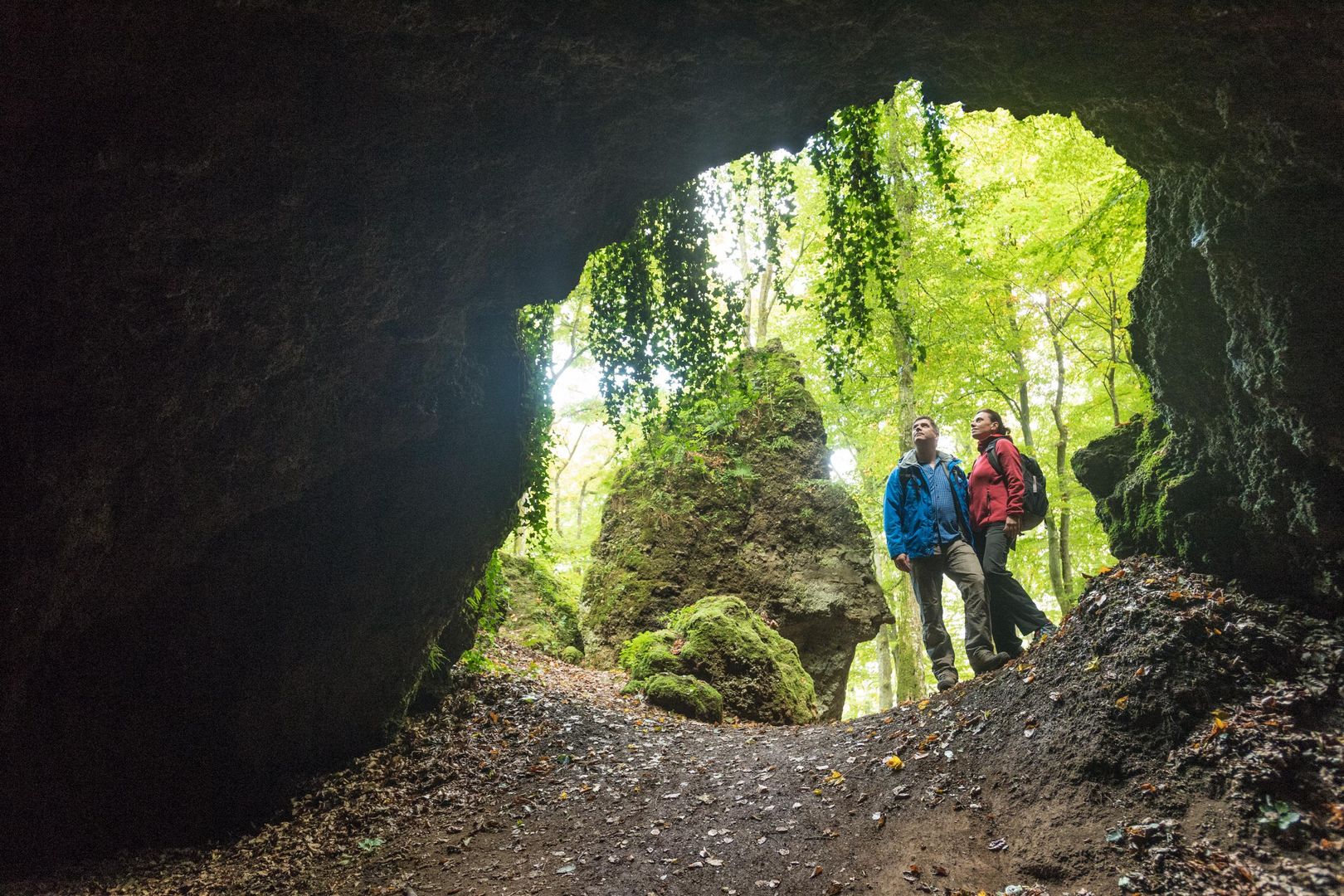 Waarom is het zo koud in de grotten, wat is het verhaal achter de molenstenen en waarom voelen de vleermuizen zich hier zo thuis? In het wijdvertakte grottenstelsel wacht een spannende reis door de tijd op ontdekkingsreizigers, avonturiers en schatzoekers. Maar voordat we de grotten gaan verkennen, zoeken we onze weg door het vulkaangebied Fischbach op een oriëntatieloop met kaart en kompas. Route. ca. 4 km
