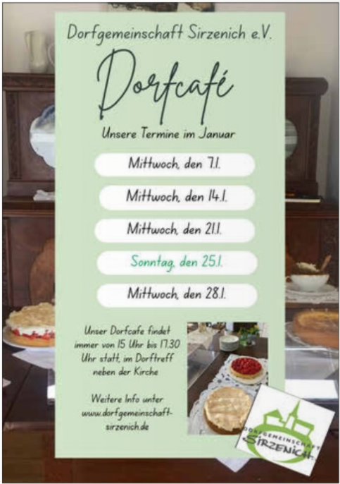 Dorpcafé op woensdag in Dorptreff Sirzenich +++ 29.10.2025 +++ 15:00 - 17:30 uur