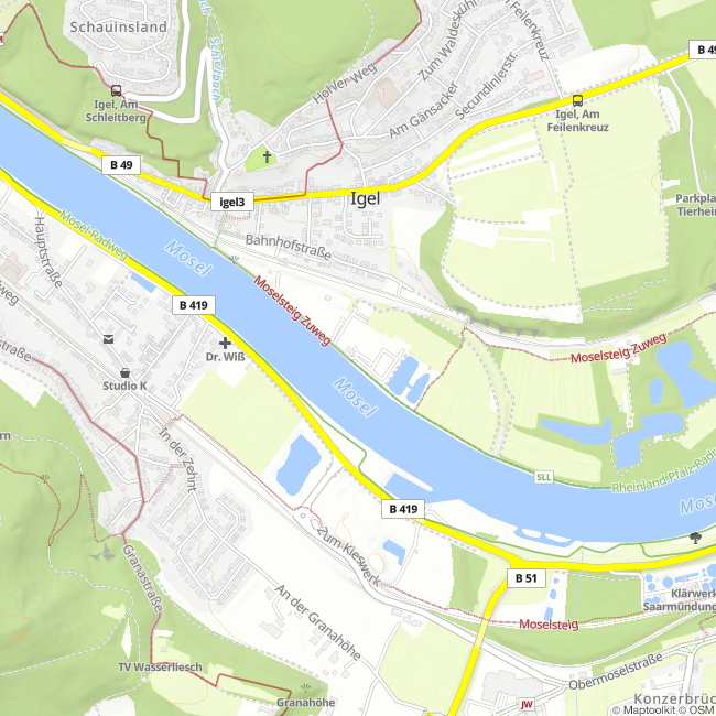 Met de trein: station Igel, RE11 vanaf 09:49 uur (vanaf hoofdstation Trier 09:37 uur), - 5 minuten lopen naar de start.