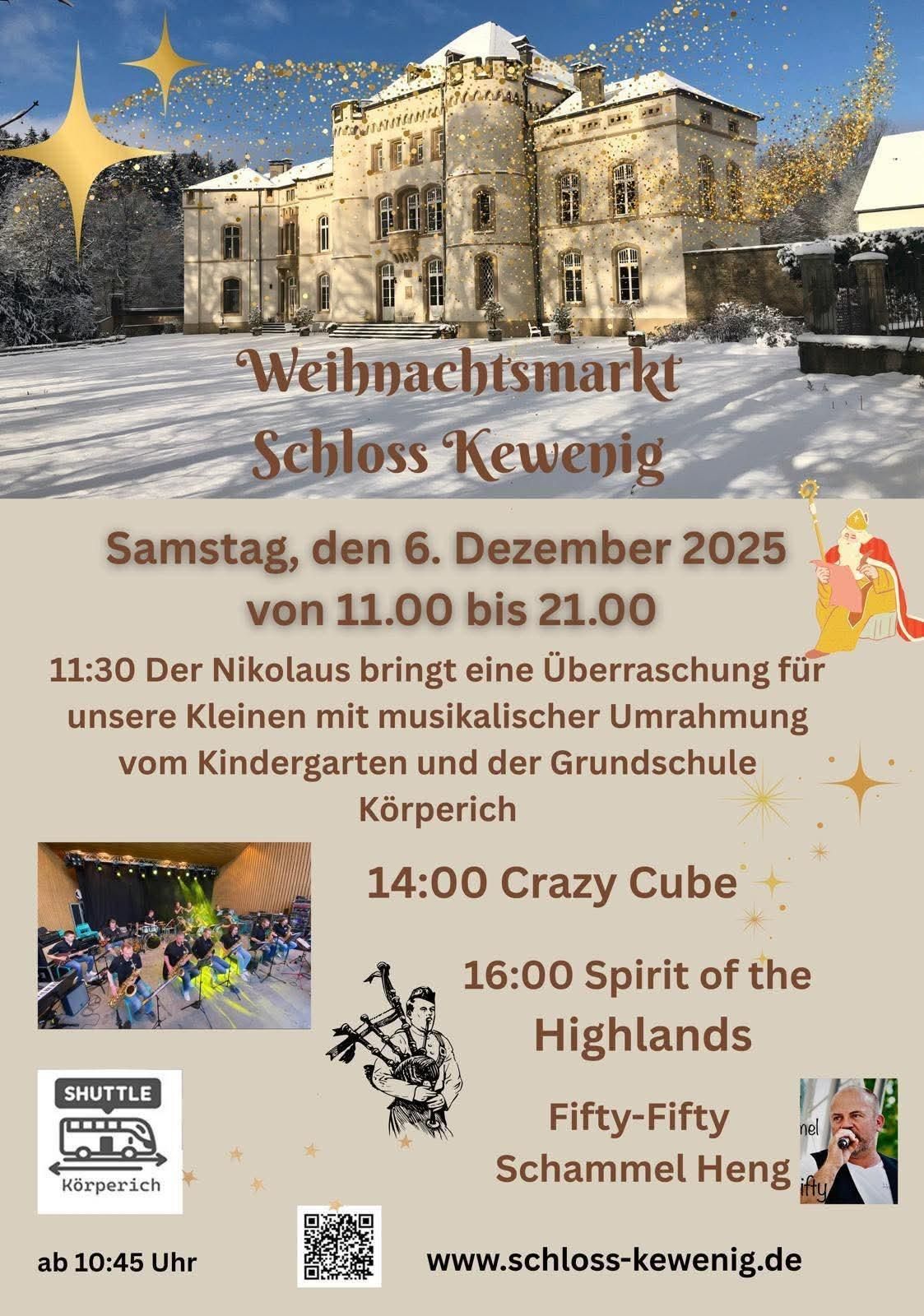 In een unieke sfeer vindt dit jaar opnieuw de kerstmarkt op kasteel Kewenig plaats.