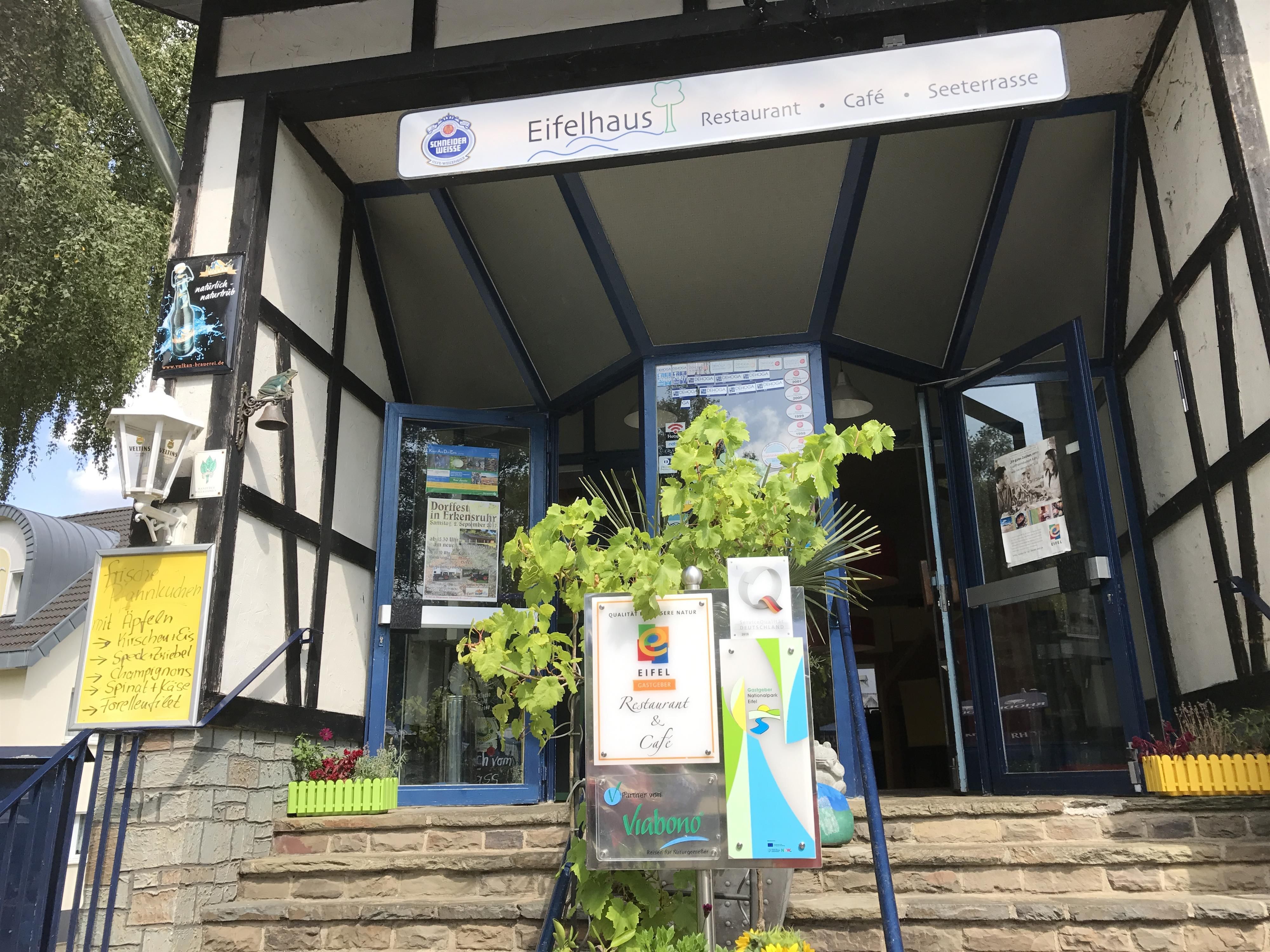 Het Eifelhaus biedt een grote keuze aan gerechten gemaakt van regionale Eifelproducten. Gebak en ijs uit eigen productie, evenals koffie uit eigen koffiebranderij bieden de beste voorwaarden om te genieten van lunch en middag aan de Obersee. Het ruime terras met uitzicht op de Obersee nodigt uit om te blijven hangen.