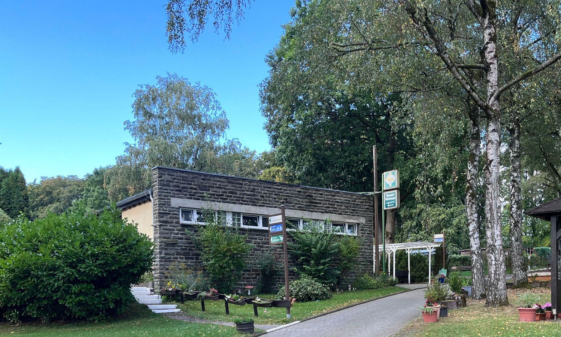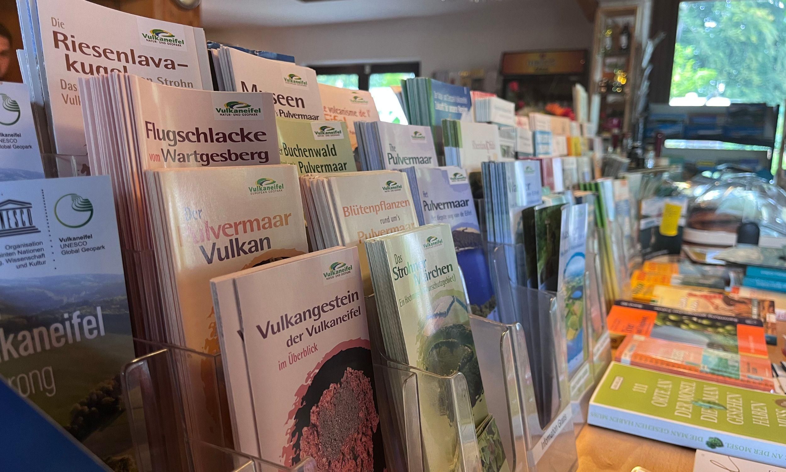 In het gastenhuis is alles onder één dak verenigd: receptie, kiosk, snackbar, verkoop van broodjes, toeristeninformatie en WLAN-hotspot. Daarnaast is er een gezellig café met snacks. Binnen nodigen verwarmde zitplaatsen uit tot verpozen, terwijl er buiten een groot terras beschikbaar is. De drankkaart biedt allerlei Eifelse specialiteiten, terwijl op het menu hartige salades – op verzoek met vleesbeleg – koffie en taarten van de lokale bakker te vinden zijn.