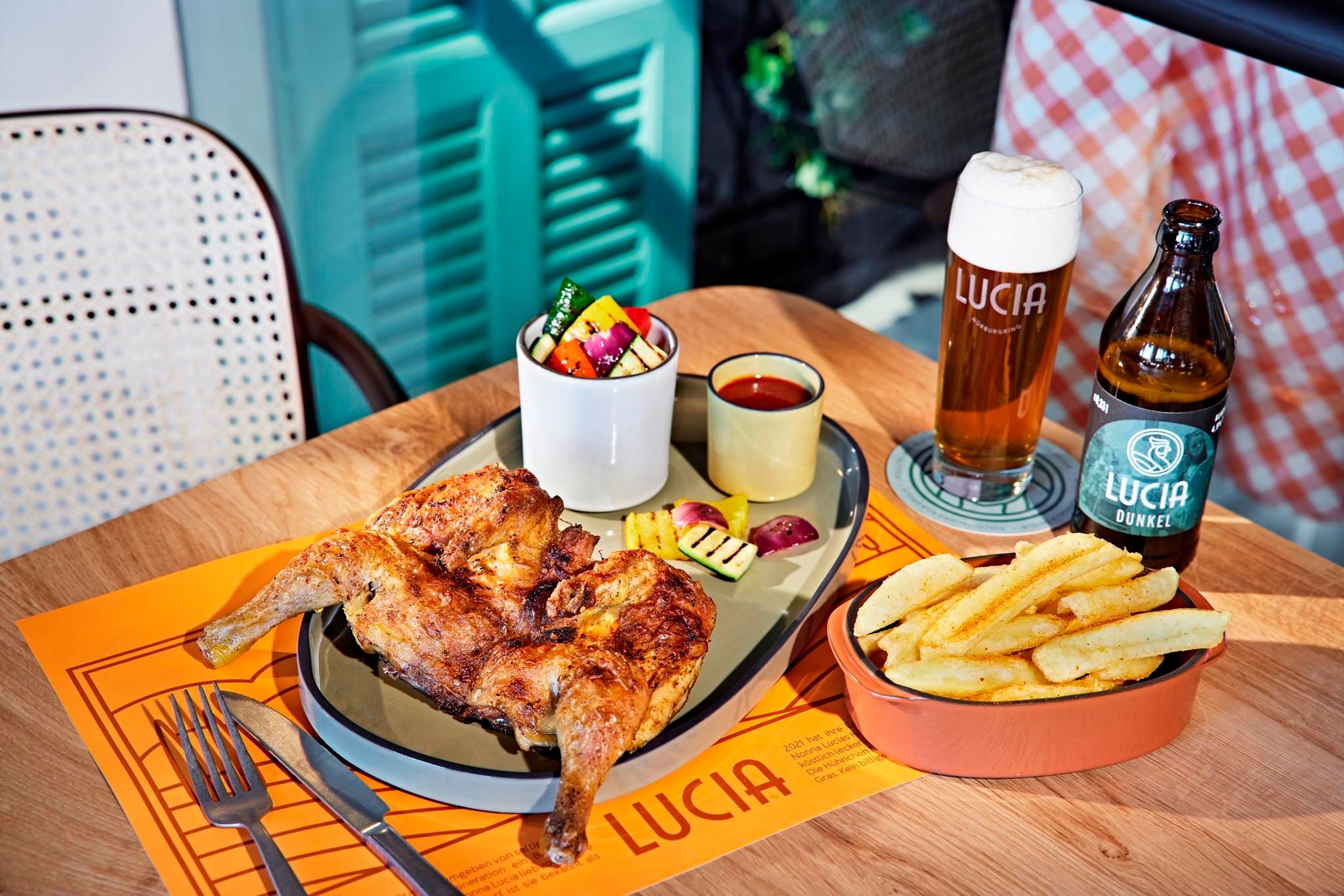 100% vers - we serveren een verse en sappige hele kip met de originele LUCIA Salsa di Pollo