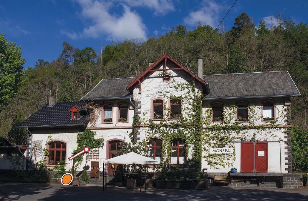 Gelegen aan de rand van het pittoreske Eifel dorp Monreal, is de Weinschänke in elkaar grijpende is een populaire ontmoetingsplaats voor kenners, liefhebbers van stijlvolle sfeer en al diegenen die zich willen trakteren op iets sinds 1992 in het historische treinstation. Geniet van een avond met lekker eten en geselecteerde wijnen, vier het met familie, vrienden of het bedrijf... de in elkaar grijpende laat niets te wensen over.