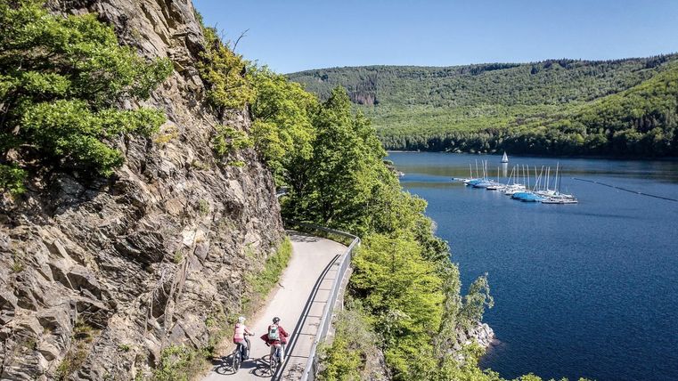 Het informatiepunt van het Nationaal Park Einruhr ligt op slechts een paar kilometer van Rurberg. Hier kun je elektrische fietsen huren voor €35,00 per dag (vooraf reserveren is aanbevolen op +49 2473 9377 18). Vanuit Einruhr kun je het Nationaal Park Eifel en de Obersee te voet, met de fiets of aan boord van de Rursee verkennen.