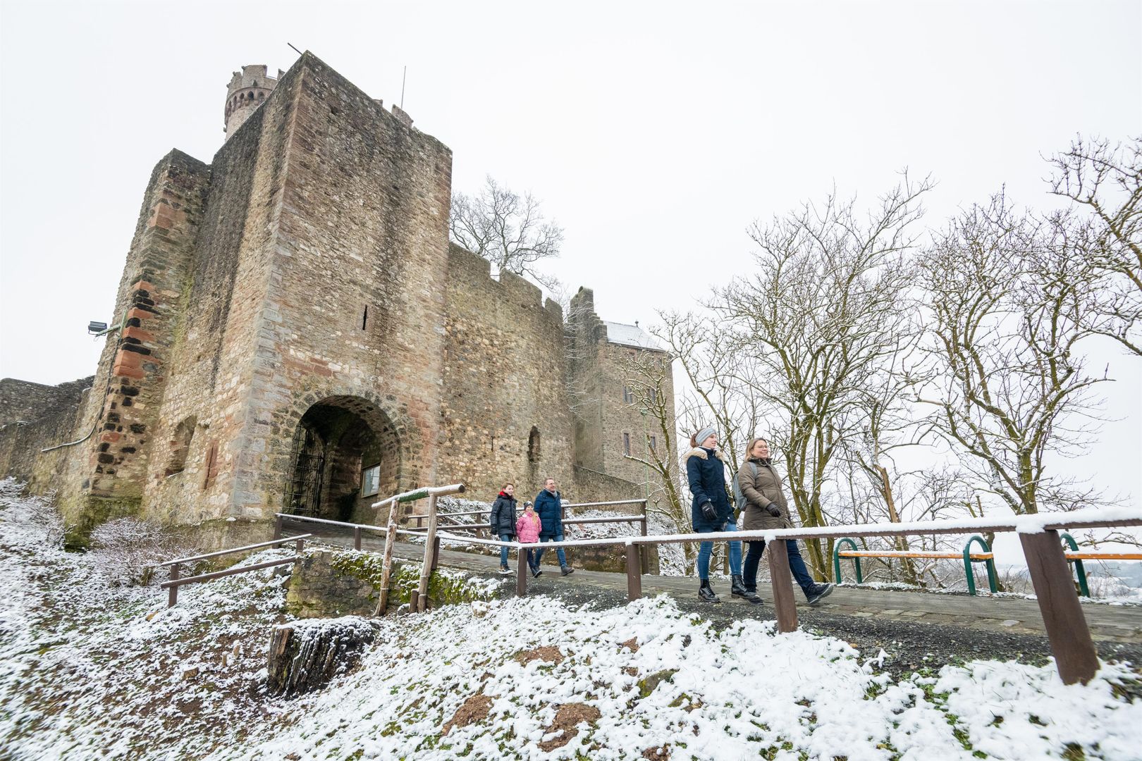 De burcht Kasselburg staat hoog boven de rivier de Kyll, op een verticaal plateau van dolomietgesteente en basalt. De burcht is onmiskenbaar dankzij haar indrukwekkende dubbele toren, die van verre zichtbaar is en het burchtcomplex uit de 12e eeuw tot het merkteken van de regio Gerolstein maakt. De goed bewaard gebleven ruïnes laten niet alleen de harten van middeleeuwse fans sneller kloppen, maar hebben ook een spannend dierengeheim. Het is de thuisbasis van veel imposante roofvogels, die hun adembenemende kunsten tonen in vliegshows, en de grootste roedel wolven in West-Europa, die semi-wild leven op 10 hectare bos en rotsachtig terrein.