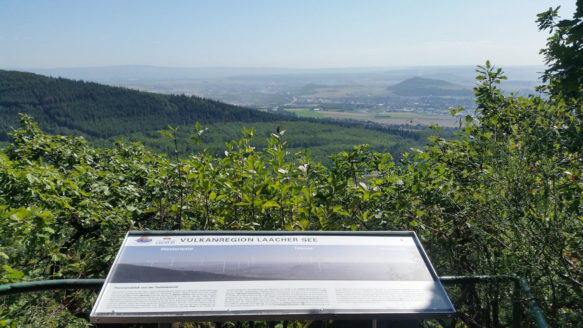 Het uitzichtspunt "Teufelskanzel" ligt op de "Krufter Ofen", een basalten sintelvulkaan ten zuiden van het Laacher meer.