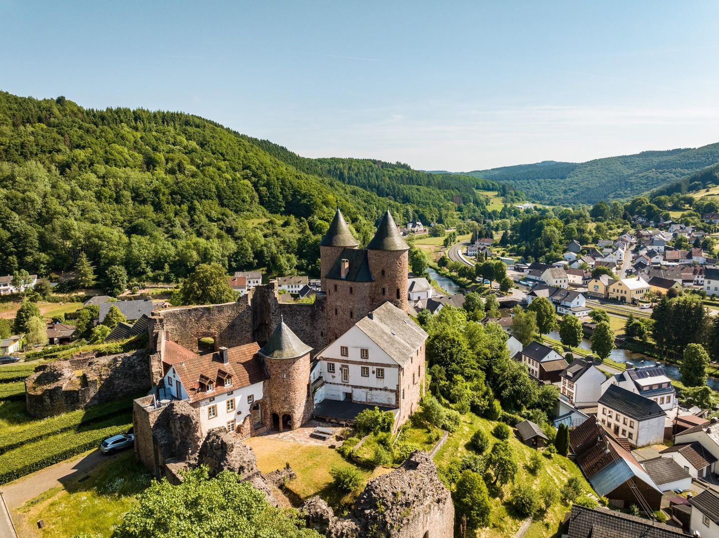 Het imposante decor van het kasteel torent hoog boven het Eifeldorp Mürlenbach uit. De overgrootmoeder van Karel de Grote wordt beschouwd als de stichtster van het kasteel, en hijzelf zou er geboren zijn. Tegenwoordig is het kasteel bewoond en kan daarom alleen op bepaalde tijden en in bepaalde delen worden bezocht.