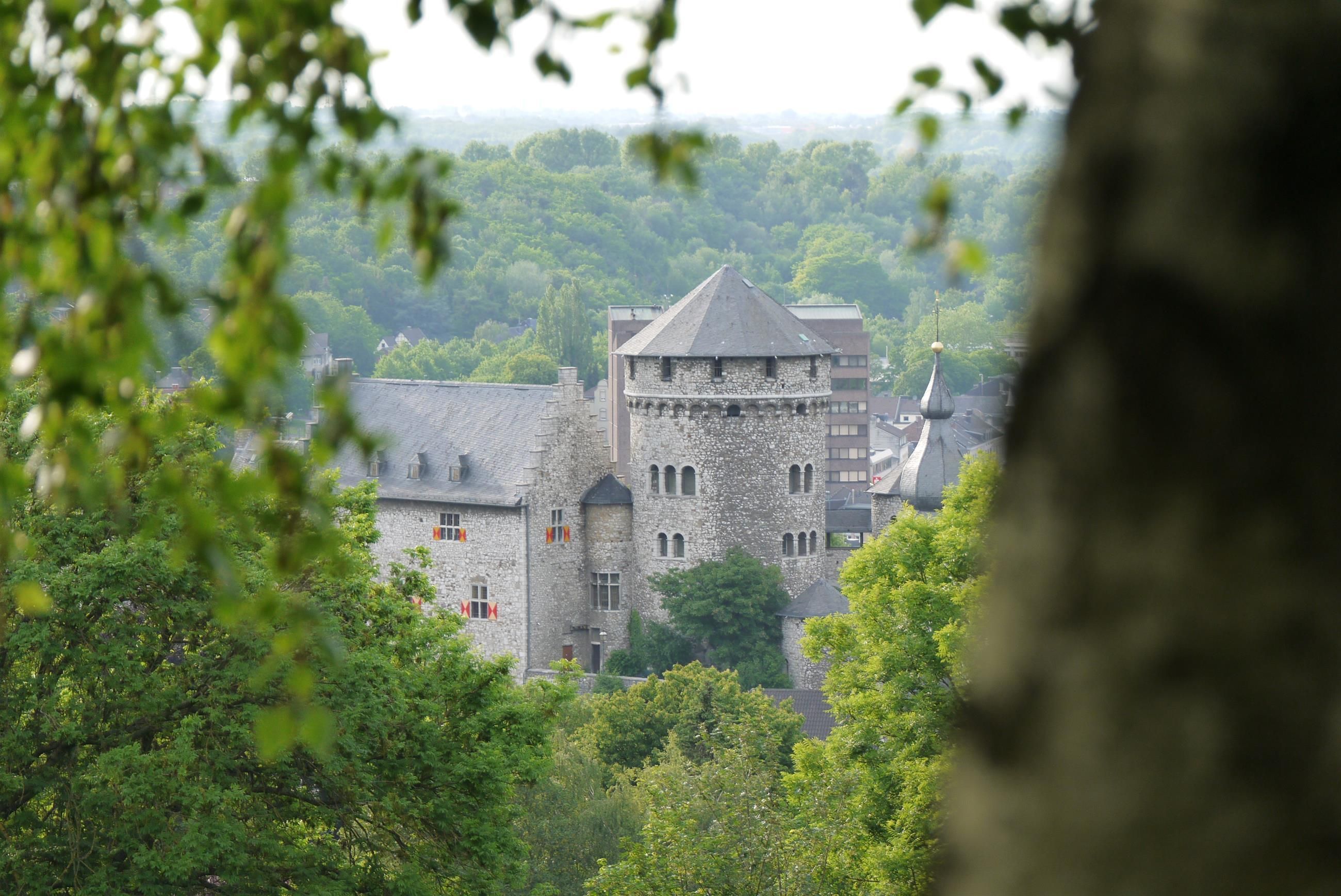 Aan de westelijke kant van de binnenplaats tussen het hoofdgebouw en de ronde toren leidt een trap naar de lagere binnenplaats. De lagere binnenplaats biedt uitzicht op de indrukwekkende blauwe hardsteen vorming van het kasteel.