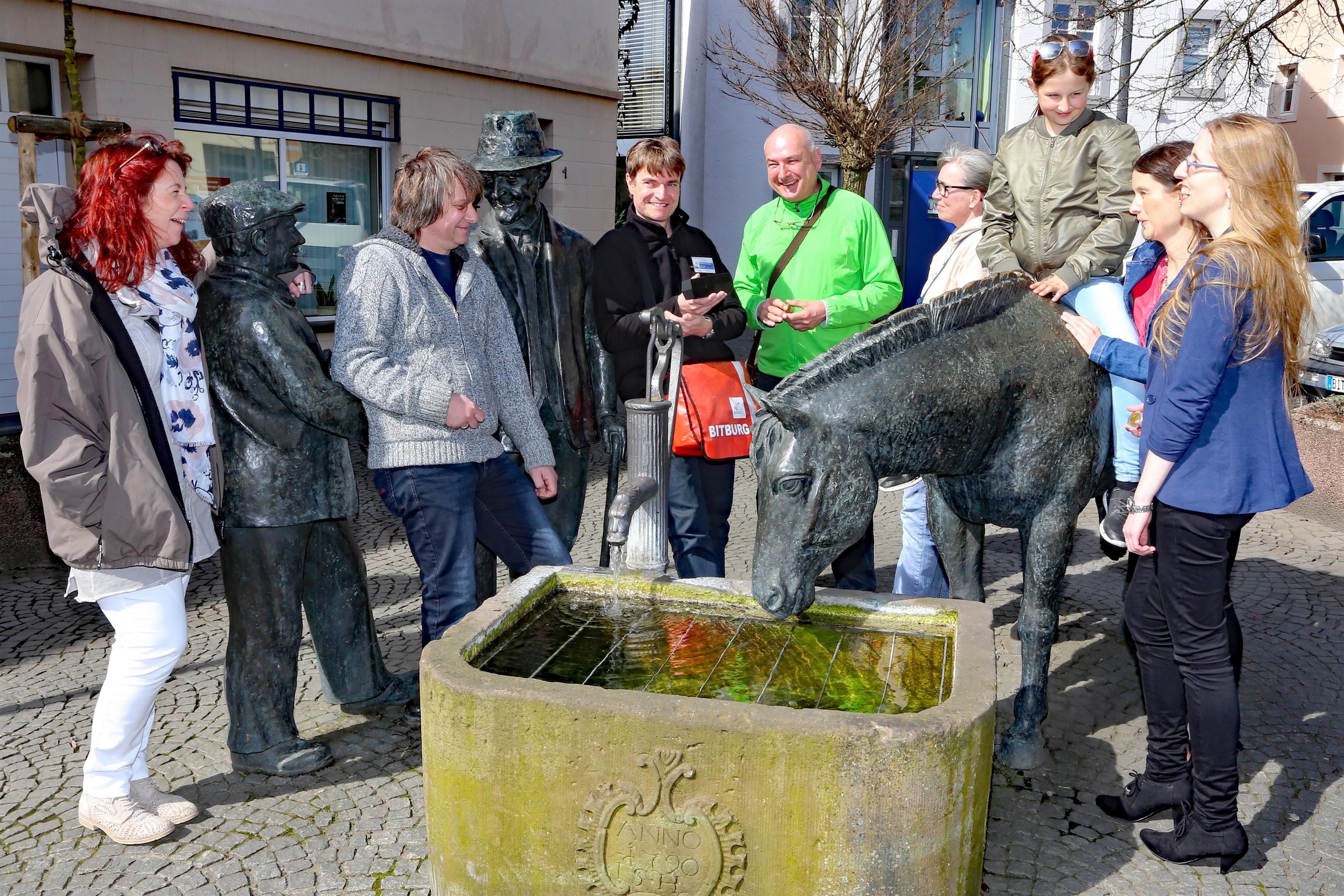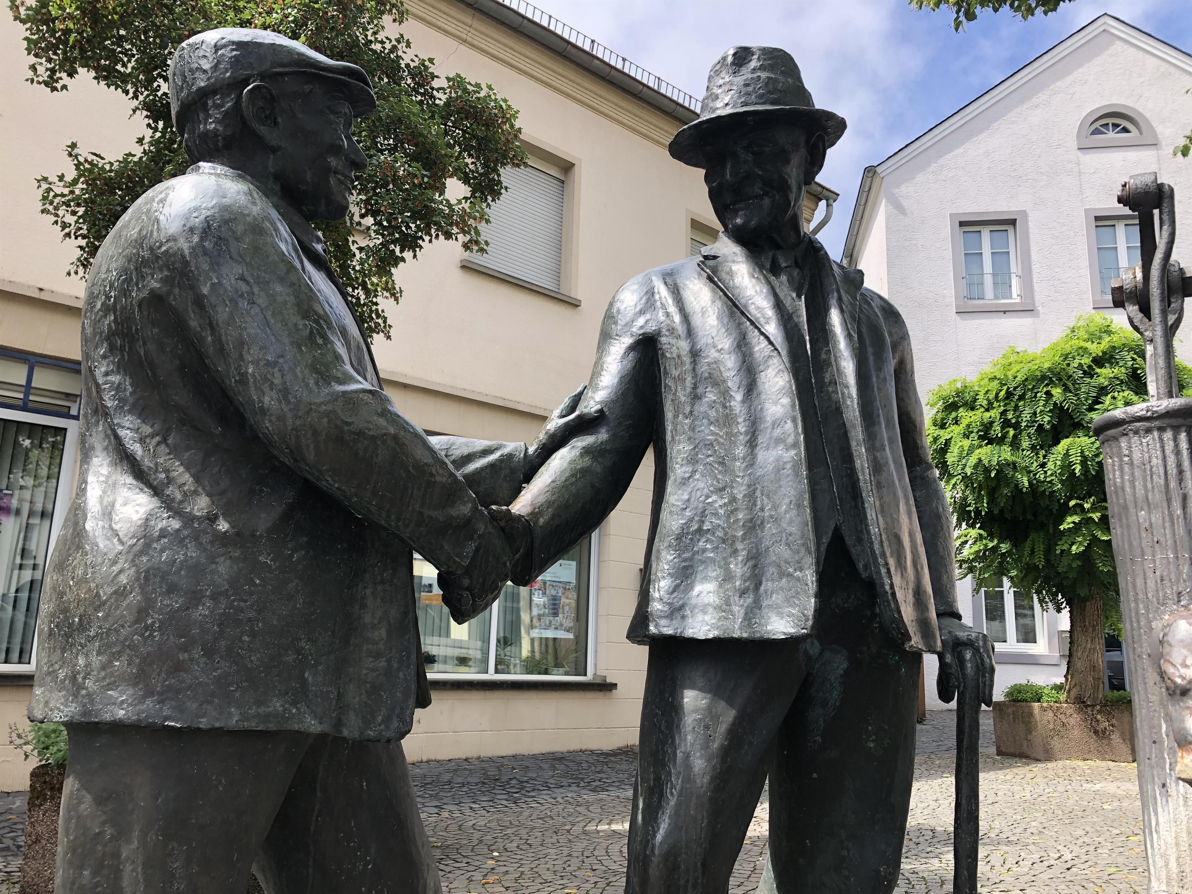 Dit bronzen beeldhouwwerk op de vroegere paardenmarkt, werd door de Bitburgse beeldhouwer Roger Delleré gecreeerd en toont de handslag van 2 bekende Bitburgse paardenhandelaren (Klaus Schilling & Fritz Jäschkes) ter herinnering aan vroegere tijden, toen de paarden- en veemarkten nog tot het dagelijkse leven behoorden.