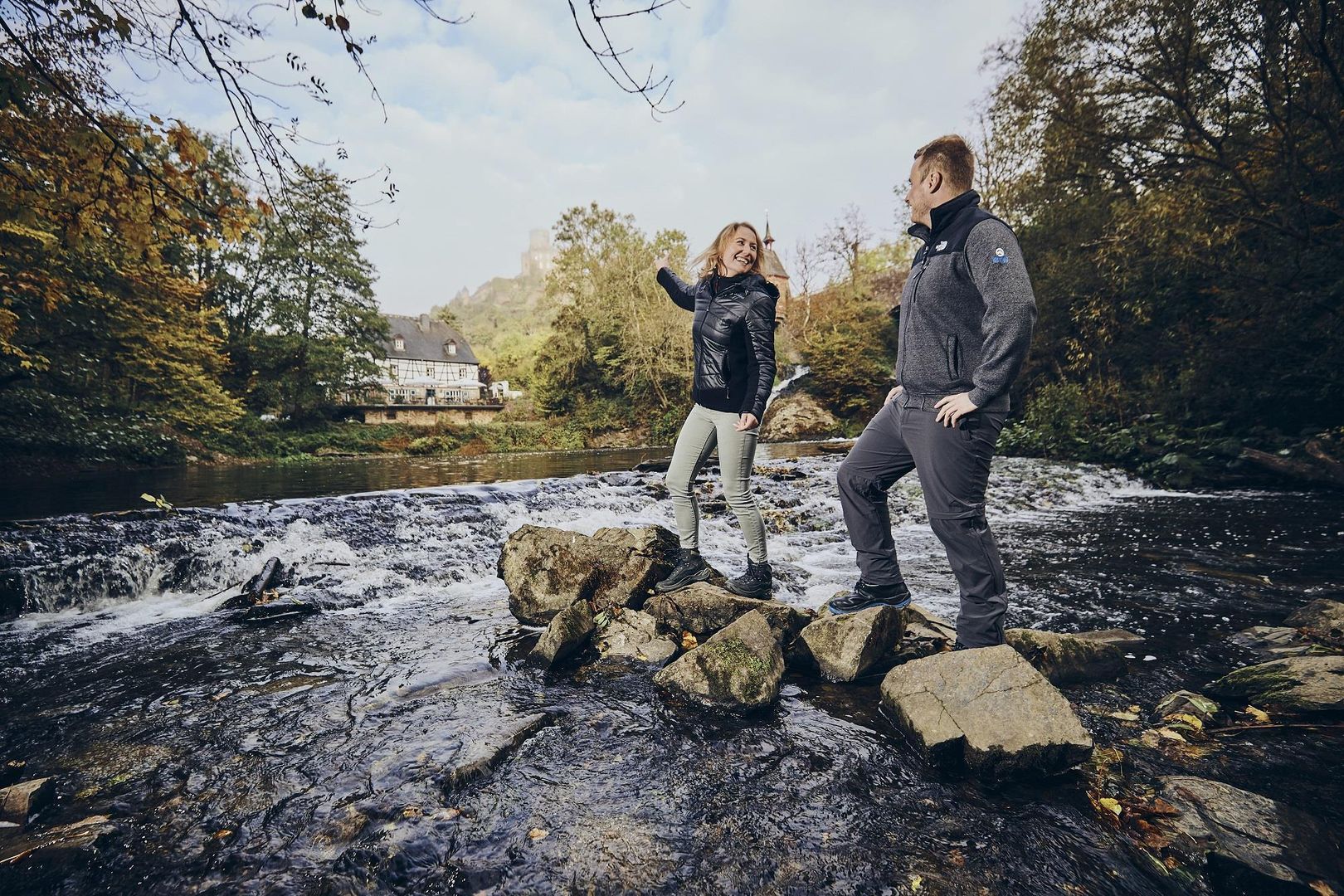 Heel indrukwekkend is de waterval aan de Pyrmonter Molen – de grootste waterval van de Eifel met de burcht Pyrmont op de achtergrond. Dit plaatsje is uitstekend voor een kleine pauze tijdens een wandeltour. Ontdek de schoonheid en de onvervalste natuur langs de Elzbach: wandel langs de droompaden “Eltzer Burgpanorama” of “Pyrmonter Felsensteig”. Een bijzonder mooi deel is de Jakobsweg van de Eifelvereniging: van Monreal in de Vooreifel door het Elzbachdal naar Moselkern aan de Moezel.