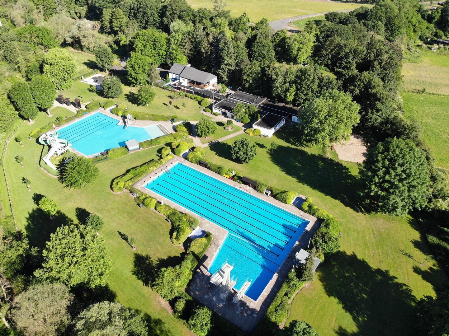 Het idyllische buitenzwembad in het Nettetal is nog steeds erg populair bij jong en oud. Het water in het peuterbad, het niet-zwemmersbad en het 50-meterbad is heerlijk verfrissend en de sfeer is aangenaam rustig. In het niet-zwemmersbad trekt een 50 meter lange waterglijbaan vooral jongere gasten voor wat actie en plezier. Het zwemmersbad daarentegen is populair bij oudere gasten dankzij de invalidentrappen en de 50 meter lange banen. Een extra duikbad met torens van 1m, 3m en 5m zorgt voor afwisseling. Zelfs degenen die niet per se het door zonne-energie verwarmde water nodig hebben om te ontspannen, komen aan hun trekken met tafeltennis of beachvolleybal in het buitenzwembad van Pellenz. De prachtige ligweiden zijn een geweldige plek om te ontspannen. Een bezoek aan de kiosk is de perfecte manier om een dag bij het zwembad af te sluiten met verfrissende drankjes, ijs en een warme of koude snack. Het buitenzwembad van Pellenz is dagelijks geopend van mei tot september.
