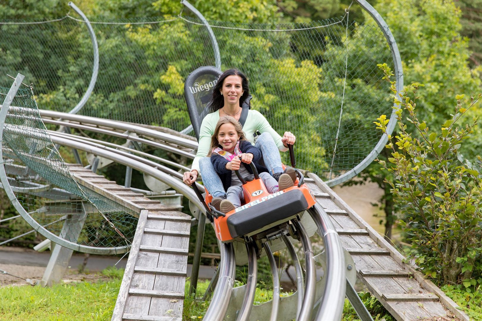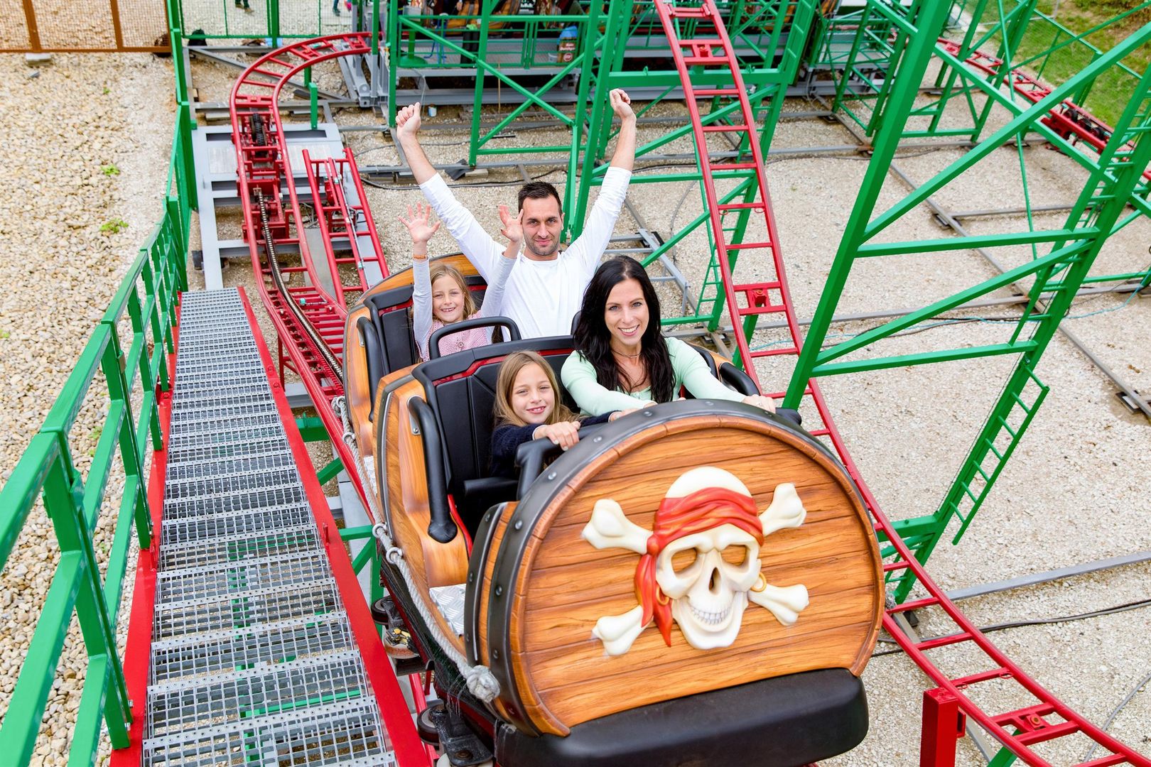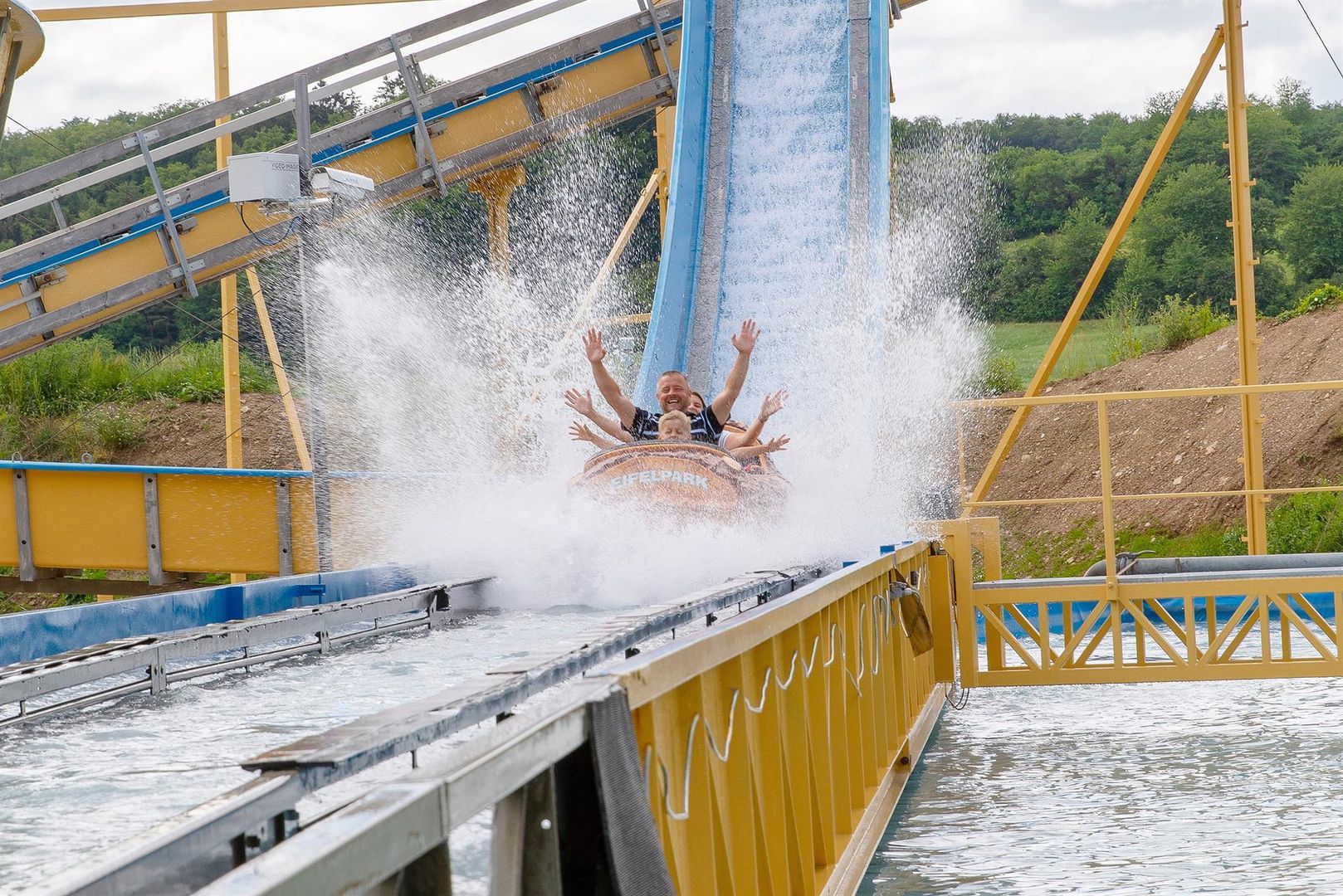 Ritplezier voor het hele gezin in het themapark Eifelpark Op de wildwaterbaan Pirateneiland maak je een verfrissende en actievolle rit in boomstambootjes langs het 360 meter lange kanaal met twee schoten vanaf een hoogte van maximaal 14 meter. In de rodelbanen van de zomerrodelbaan "Eifel-Coaster" glijd je met snelheden tot 40 km/u het dal in. De bijna 1000 meter lange baan maakt gebruik van de topografie van het Eifelpark en is perfect geïntegreerd in het prachtige parklandschap dat kenmerkend is voor de zuidelijke Eifel. Andere hoogtepunten onder de attracties zijn de razendsnelle achtbaan Captain Jack's Wild Mouse, de wereldprimeur Pirate's Cannon Ride, kettingcarrousel, familieachtbaan, wildwaterbaan, Pony Express, Gondorf Pirate Battle en de twee botsauto's voor kinderen en kinderen in hart en nieren. Zelfs de allerkleinsten zullen zich vermaken: de bouwplaatsattractie, de minitestbaan of de Eifelpiste kunnen vanaf 2 jaar worden bereden. In het poppentheater beleven jong en oud spannende avonturen met Punch, Robber en Purzel.