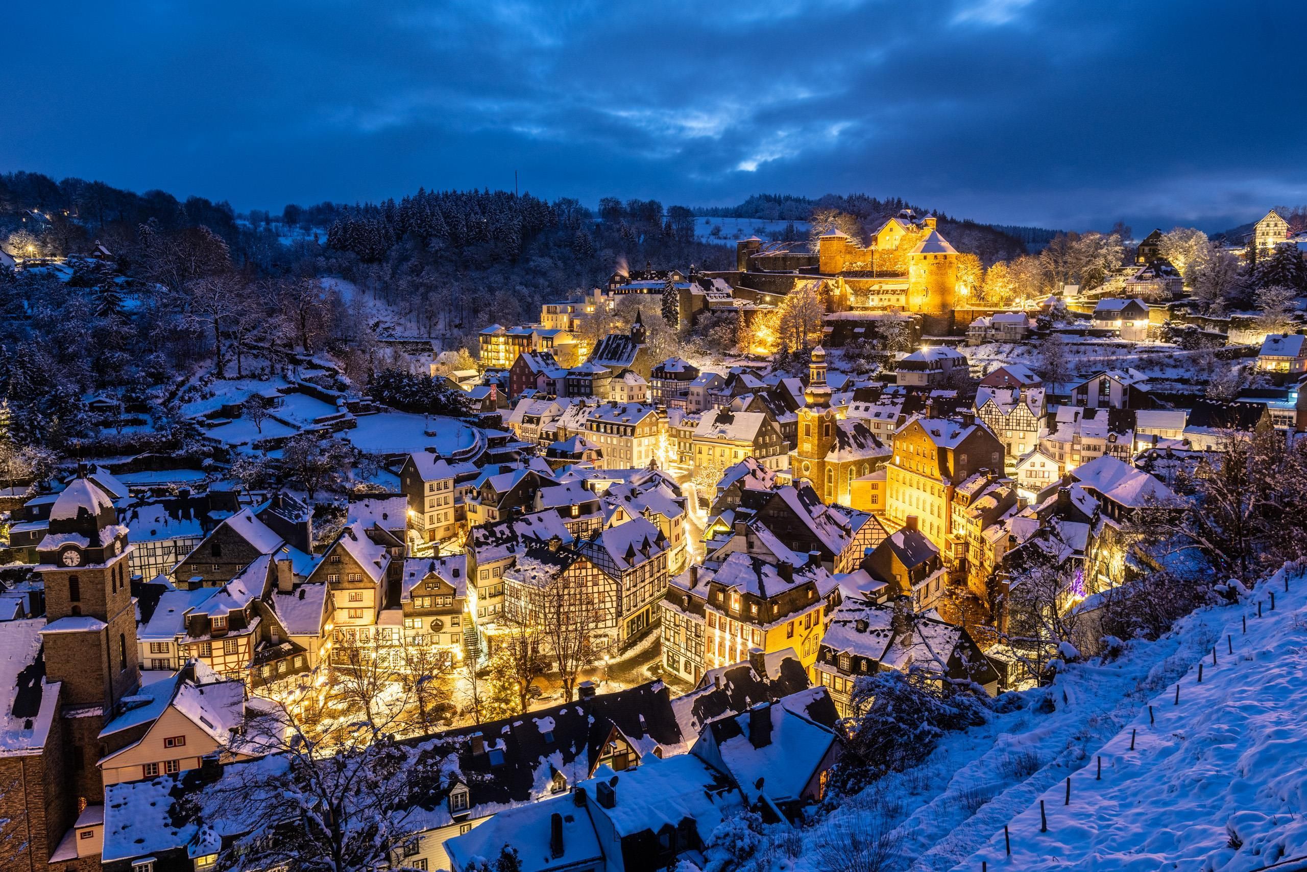 Een bezoek aan Monschau is in elk jaargetijde een genoegen, maar wanneer het in de winter begint te sneeuwen, veranderen de tere vlokjes de Eifelstad in een sprookjesachtig oord. Kerstbomen sieren de stad, cafés en glühweinkraampjes bieden warme dranken om u op te warmen. Een wandeling over de kerstmarkt van Monschau tijdens een van de vier adventsweekends is bijzonder sfeervol. Een geavanceerd verkeers- en parkeerbegeleidingssysteem maakt het voor mensen die niet bekend zijn met het gebied gemakkelijk een parkeerplaats te vinden - op elk moment van het jaar.