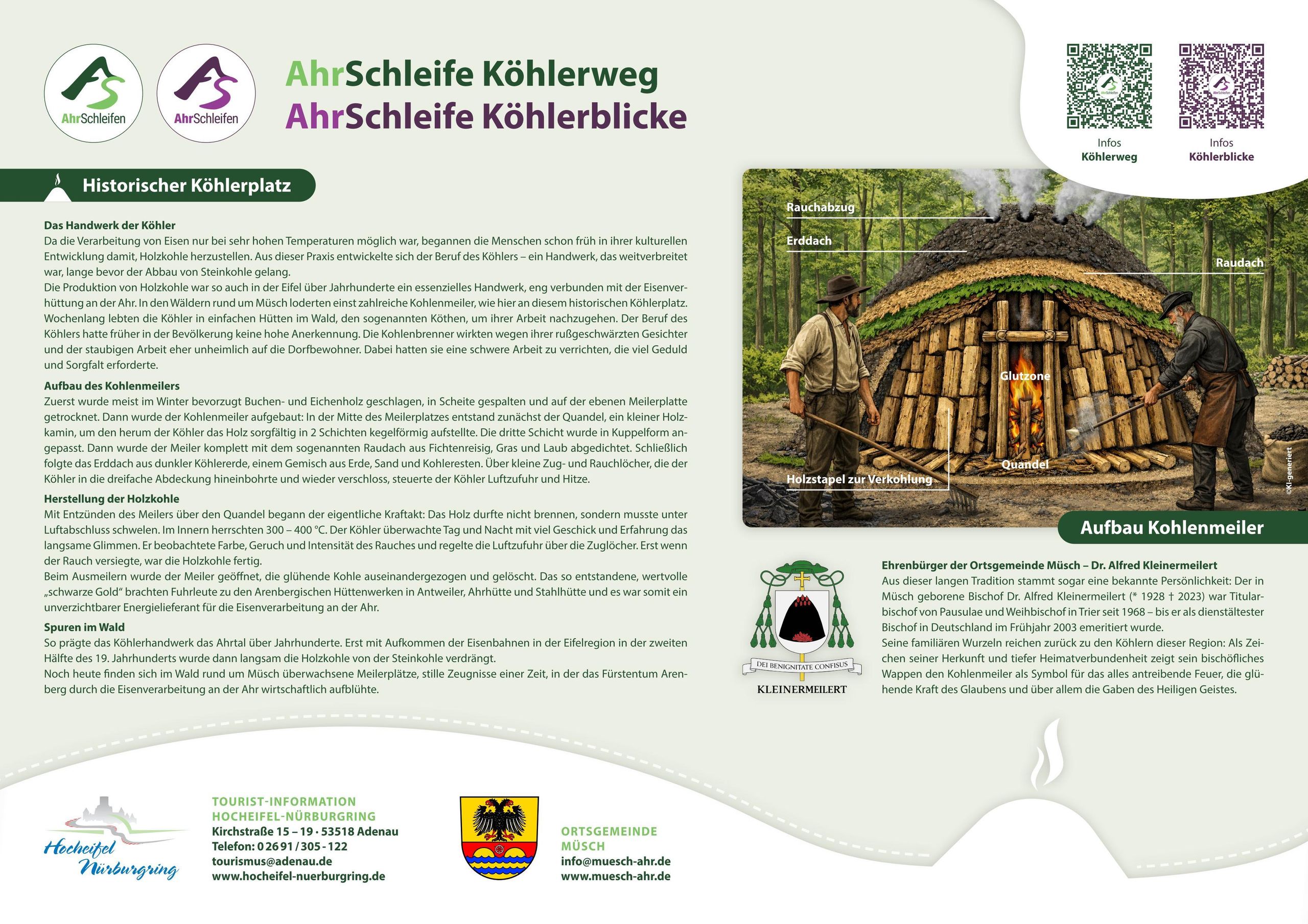 Op de voormalige houtskoolmeilerplaats is er een informatietafel die inzicht biedt in het leven van de houtskoolbranders en op duidelijke wijze uitleg geeft over de productie van houtskool in een houtskoolmeiler.