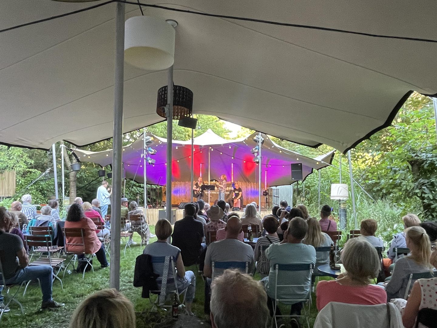 Ca. 600 vierkante meter direct achter de Pleußmühle. Twee grote "bedoeïenententen" maken het podium en het publiek weerbestendig. Nog een grote parasol. Zitplaatsen voor maximaal 150 mensen. Techniek: zie "Podium", verlichte tuin. Bruikbaar tot 21.30 uur van half juni tot begin september.