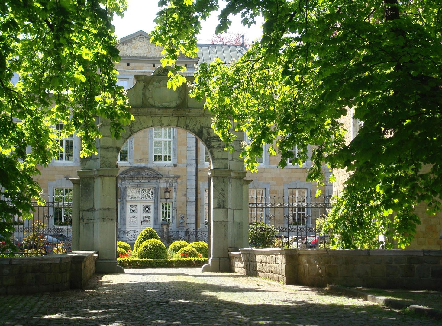 Bovendien onderscheidt dit complex zich van de gebruikelijke koperen binnenplaatsen in Stolberg door de strikte en geaccentueerde scheiding van het landhuis en de diensthof. Het nog bestaande kerngebouw van het voormalige depot, dat tegenwoordig als dokterspraktijk wordt gebruikt, bevindt zich voor het wooncomplex met een duidelijke verspringing naar links. Dit maakt de toegang mogelijk langs de symmetrie-as van het landhuis, zodat de bezoeker onmiddellijk en ongestoord wordt getroffen door de charme van de barokke architectuur. De grootteverhouding tussen het depot en het landhuis is ook veelzeggend. Het is moeilijk voor te stellen, maar het betrekkelijk kleine depot bracht de rijkdom voort die zich manifesteert in het terrein van het landhuis.