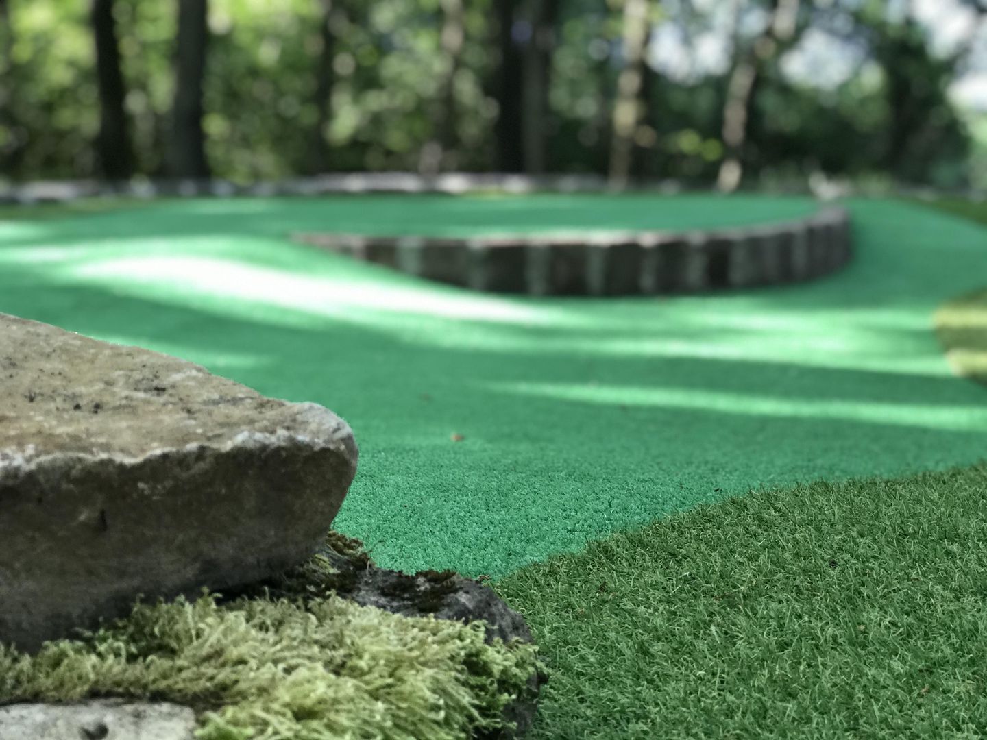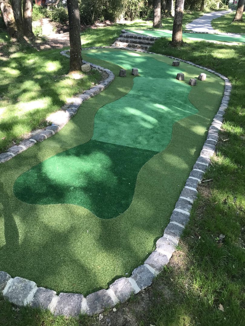 De banen van de midgetgolfbaan van het Golf Resort Bitburger Land zijn gemodelleerd naar de tees op de grote baan. Er zijn grindbunkers en natuurlijke obstakels te overwinnen. De 9-holes baan is idyllisch gelegen in een klein bos - dus zelfs in de felle zon staat niets het speelplezier in de weg.