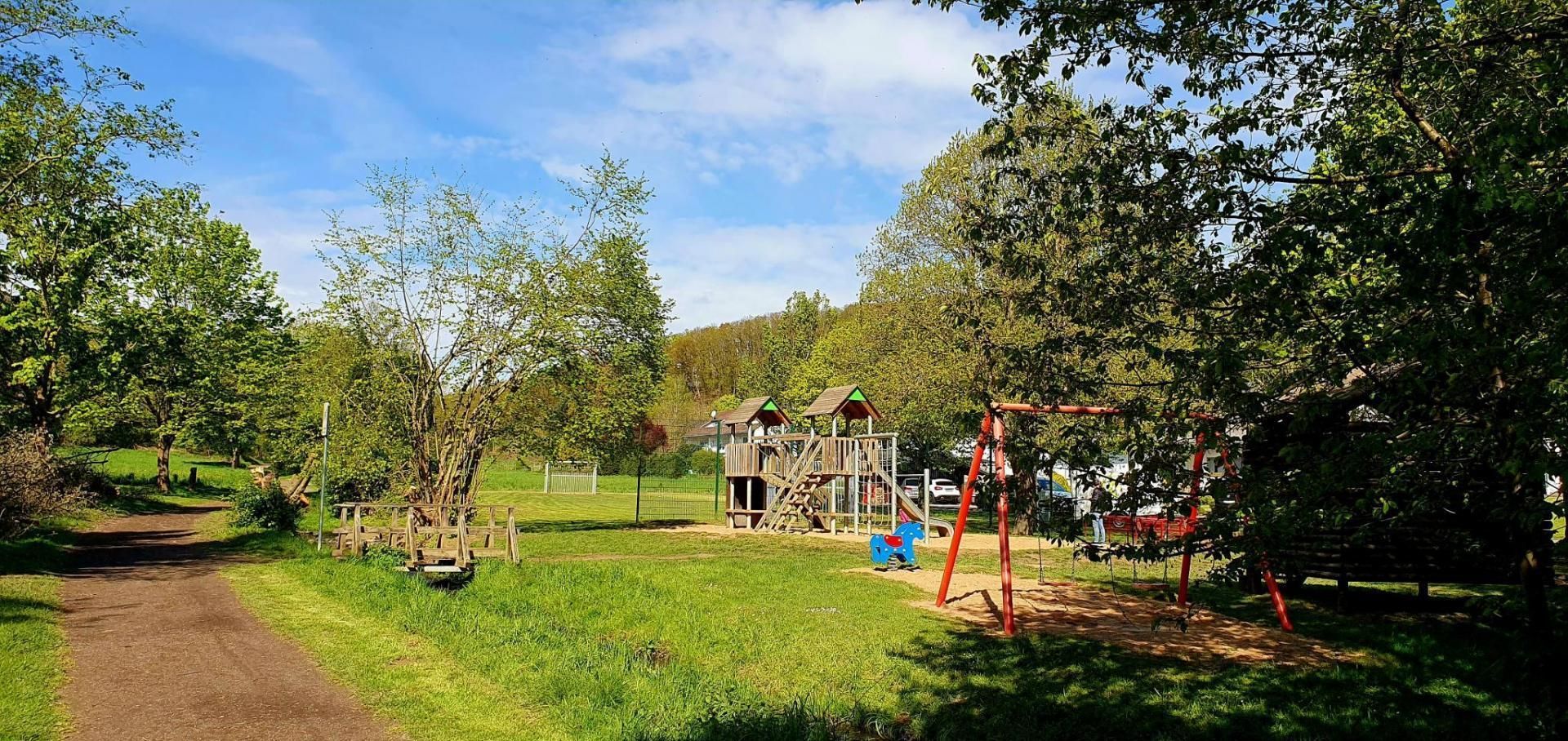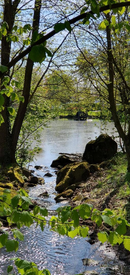Het recreatiecentrum langs de schilderachtige Kellbach leidt naar de idyllische Entenweiher vijver in Obermendig.