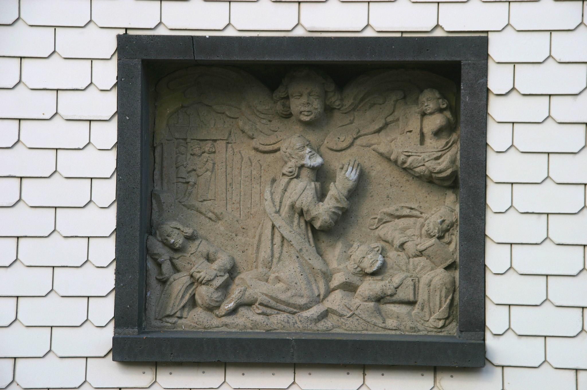 Vanaf de parochiekerk St. Hubertus in het centrum van het dorp Rieden leidt de in tufsteen uitgehouwen kruisweg met zijn zeven voetstappen bijna helemaal naar beneden, naar de plek waar nu de Waldsee ligt. De afzonderlijke staties beelden het lijdensverhaal van Jezus Christus uit. De afbeelding is perfect gevormd, in barokke stijl en toont bij elke statie een andere scène. In Rieden, zoals op veel plaatsen in de regio, is er een barok pad van staties, de zogenaamde "Zeven Voetstappen". Deze vinden hun oorsprong in de Middeleeuwen. De gelovigen liepen hier de lijdensweg van Christus. Omdat je voor elke statie een "voetval" (kniebuiging) maakt, zoals ook op de kruisweg wordt gedaan, werden deze staties voetvallen genoemd. De Riedense voetvallen werden aan het begin van de 19e eeuw gebouwd en eind jaren 1970 gerestaureerd door de Riedense steenhouwer Franz Nett.
