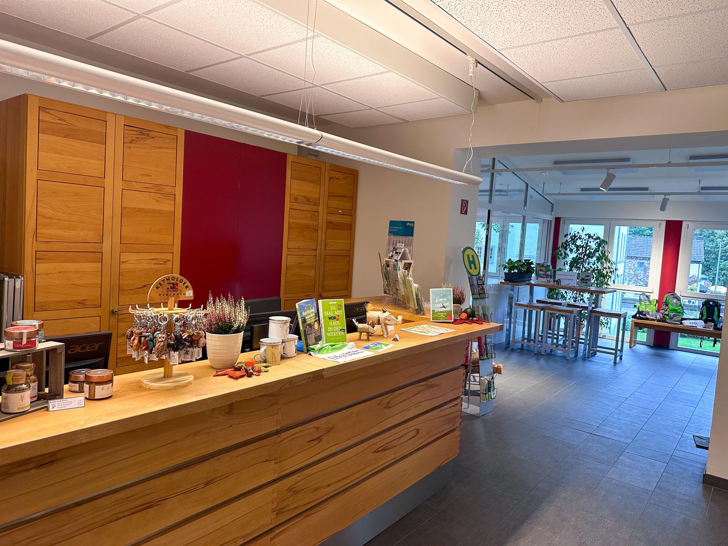 Je vindt er ook een ruim assortiment souvenirs van de Eifelshop, de lokale bedrijven "Kraut und Korn" en "Mitgebracht" en boeken over de regio.