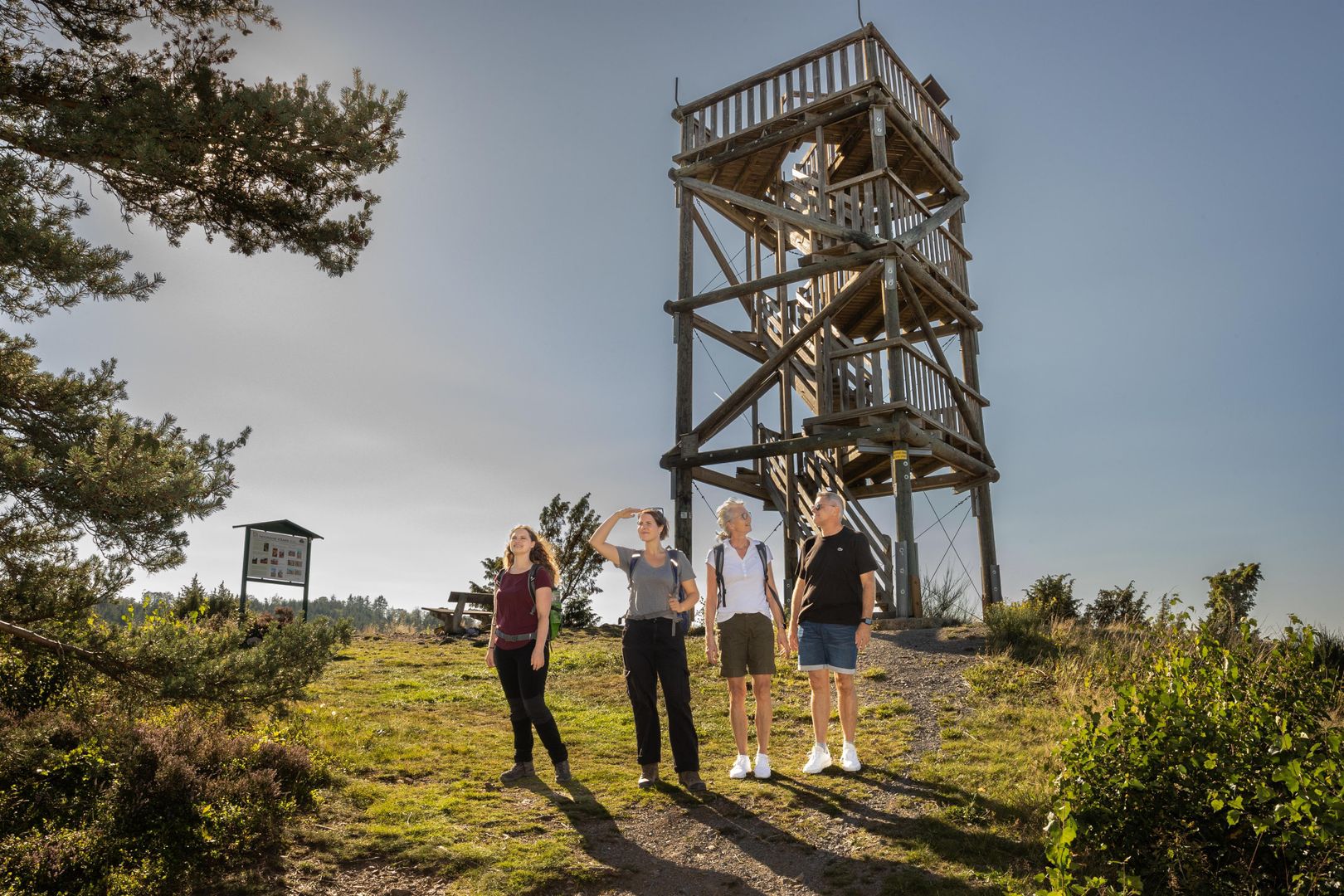 De uitkijktoren op de Weiselstein bij Schalkenbach biedt een prachtig uitzicht over de Wachholderheide.