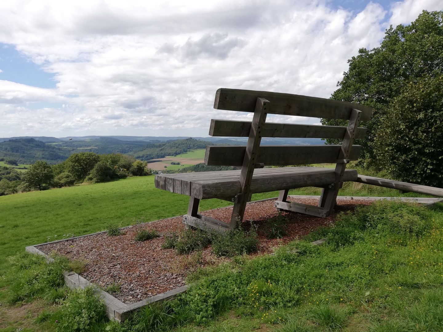 The XXL bench near Berlingen offers visitors a breathtaking view over the beautiful landscape and the Kasselburg in Pelm.