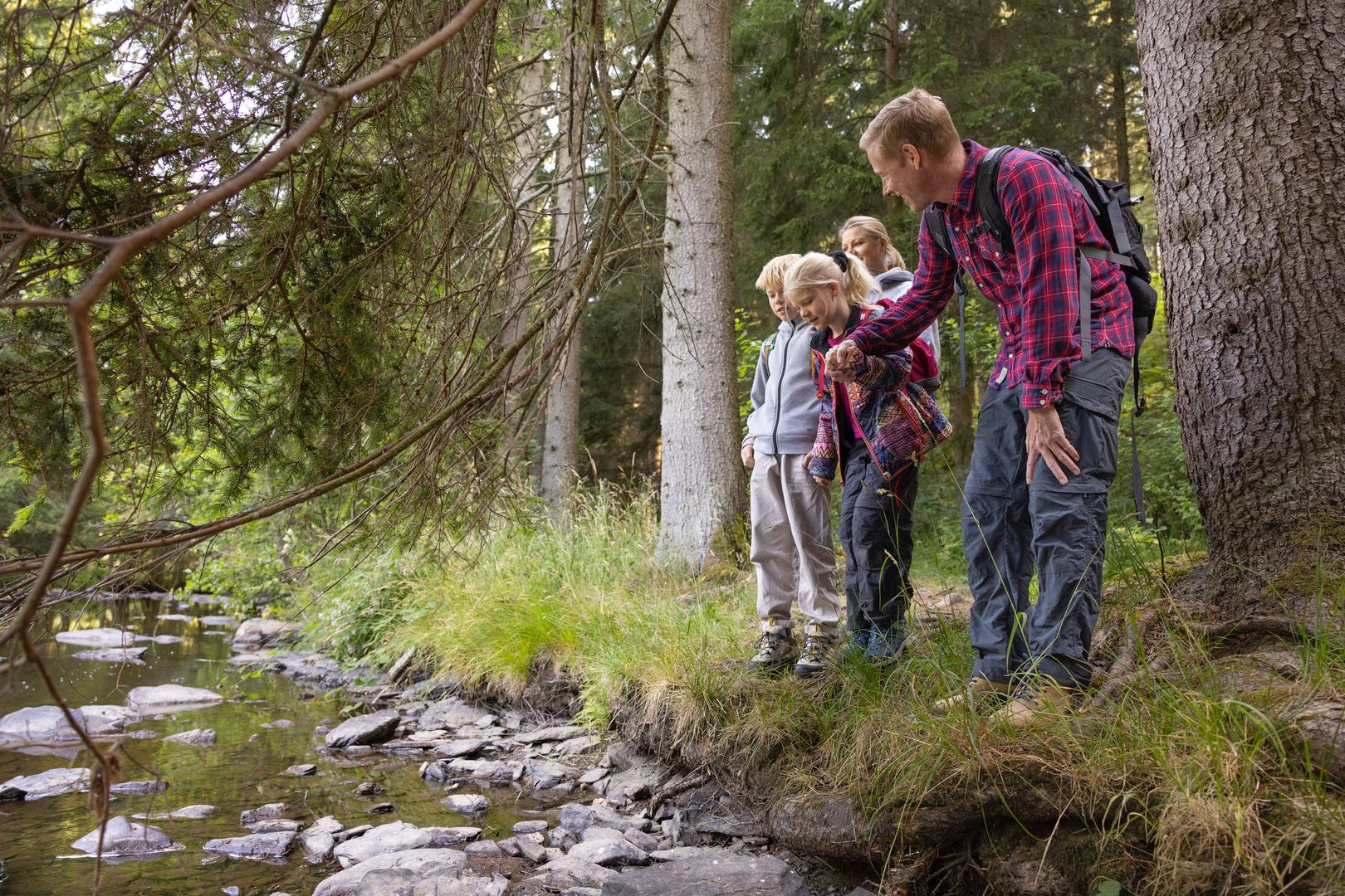 Zondagtip: Terwijl het gezin de tentoonstelling bezoekt, rijdt één ouder op zondagochtend met de auto naar de wandelparkeerplaats Wahlerscheid, direct bij de grote boswachtershoed op de B 258, en neemt de Waldlinie 815 bus (Kall-Monschau, rijdt alleen op zon- en feestdagen) terug naar de toegangspoort van het nationale park. Het gezin kan dan samen aan de wandeling beginnen en op elk moment beslissen over de terugweg.