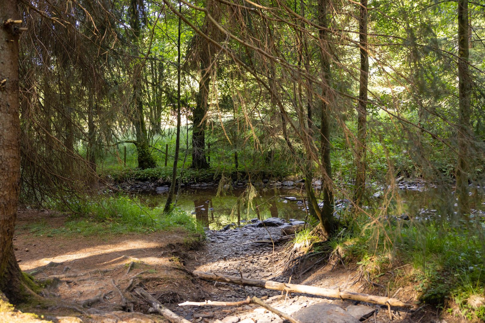 De eerste etappe van de wildernisroute als familiewandeling voert van het Nationaal Park Monschau-Höfen Gate 9,5 kilometer door het natuurlijke landschap van de Eifel.