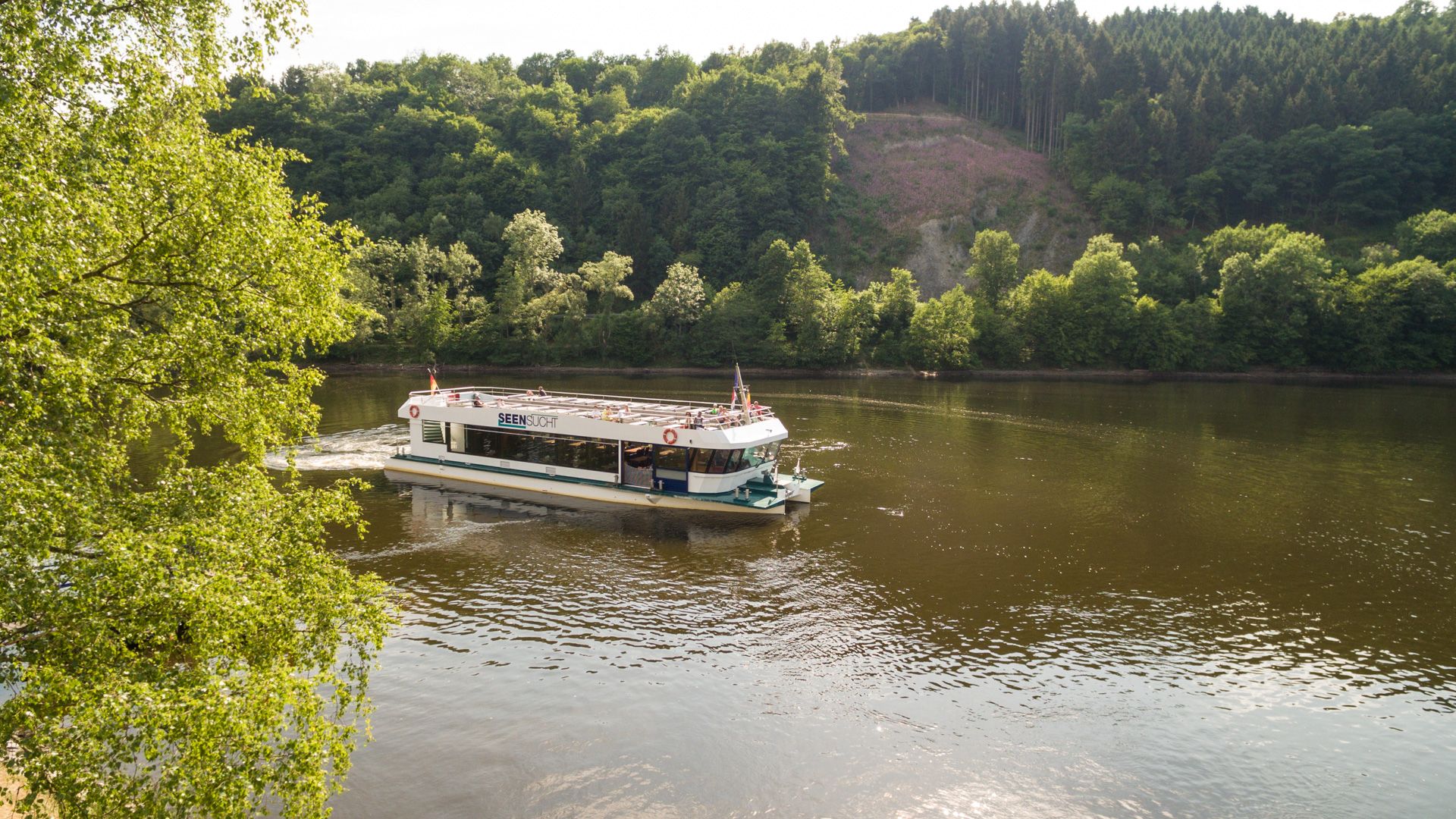 Je begint deze dagtocht met je gezin in Einruhr am Obersee. s Ochtends neem je een busrit van 10 minuten naar Vogelsang IP, bushalte "Forum", waar de wandeling van 7 kilometer begint. Voorafgaand aan de wandeltocht kun je de interessante, moderne en kindvriendelijke tentoonstelling 'Wildnis(t)räume' in het Nationalparkzentrum Eifel in Vogelsang IP bezoeken. De tentoonstelling is uitgerust met verschillende doe-elementen en nodigt je uit om de flora en fauna van het Nationaal Park Eifel te ontdekken. Van daaruit start je met een ca. 3,5 km lange wandeling door het dal tot aan het verlaten dorpje Wollseifen. In Wollseifen kun je de oude school en de gedeeltelijk gerenoveerde kerk bezoeken. Dit zou een mooie plek zijn voor een picknick. Vanaf Wollseifen voert de route over het Dreibornplateau over een vlak stuk van ongeveer 3 kilometer naar de imposante stuwdamwand van de Urftsee. Onderweg heb je adembenemende uitzichten op het gebied van het Kermeter Nationalpark, het hart van het nationale park, en op de Urftsee met de stuwdamwand. Eenmaal aangekomen onderaan de indrukwekkende stuwdamwand van de Urft-stuwdam kun je plaatsnemen op het terras en genieten van een verfrissing of een snack voordat je de comfortabele Rursee-boottocht terug naar Einruhr maakt (reistijd ca. 1 uur). De Rursee boottocht vaart van Pasen tot eind oktober.