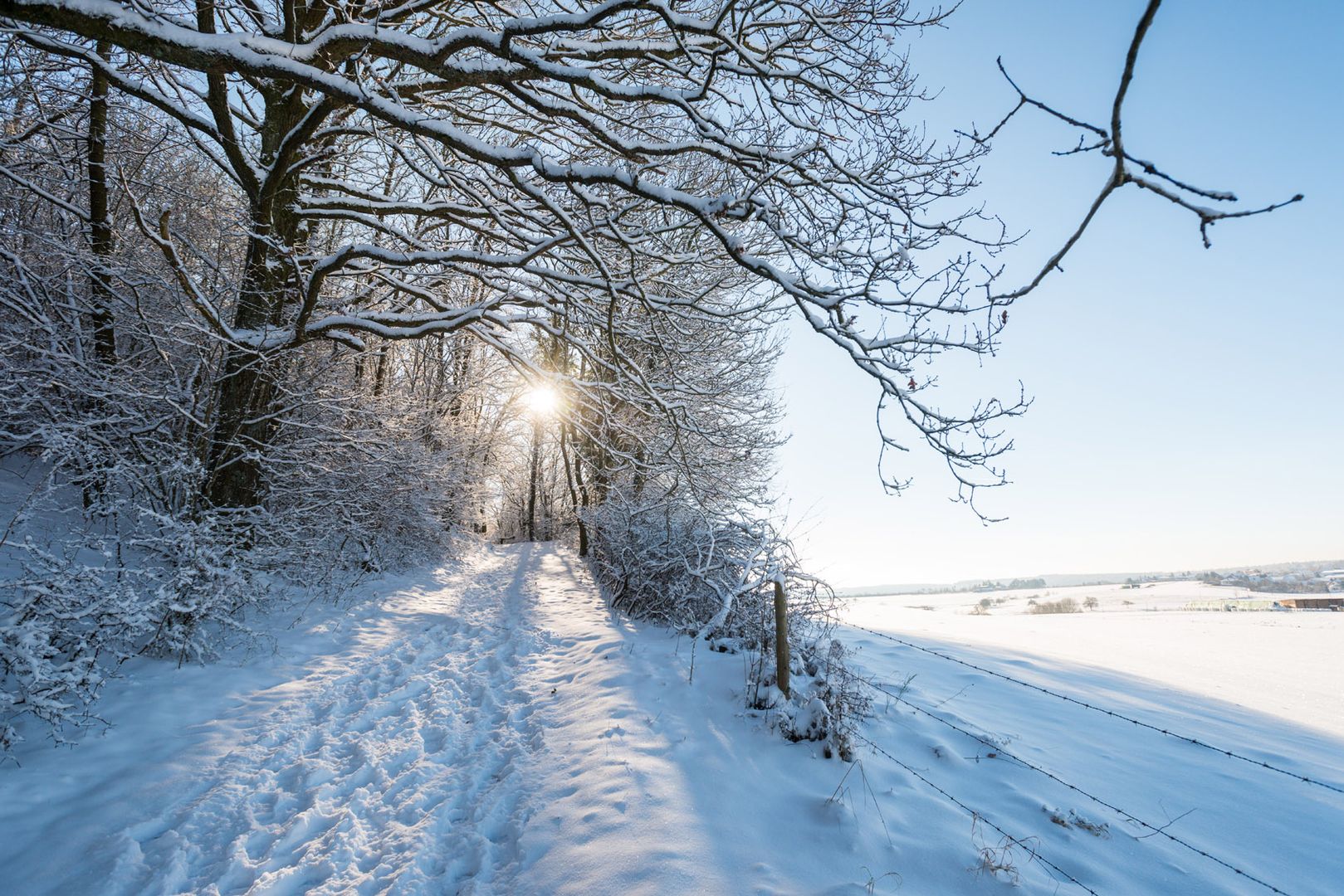 Als het 's winters sneeuwt, wordt de wandeling een sneeuwwandelpad.