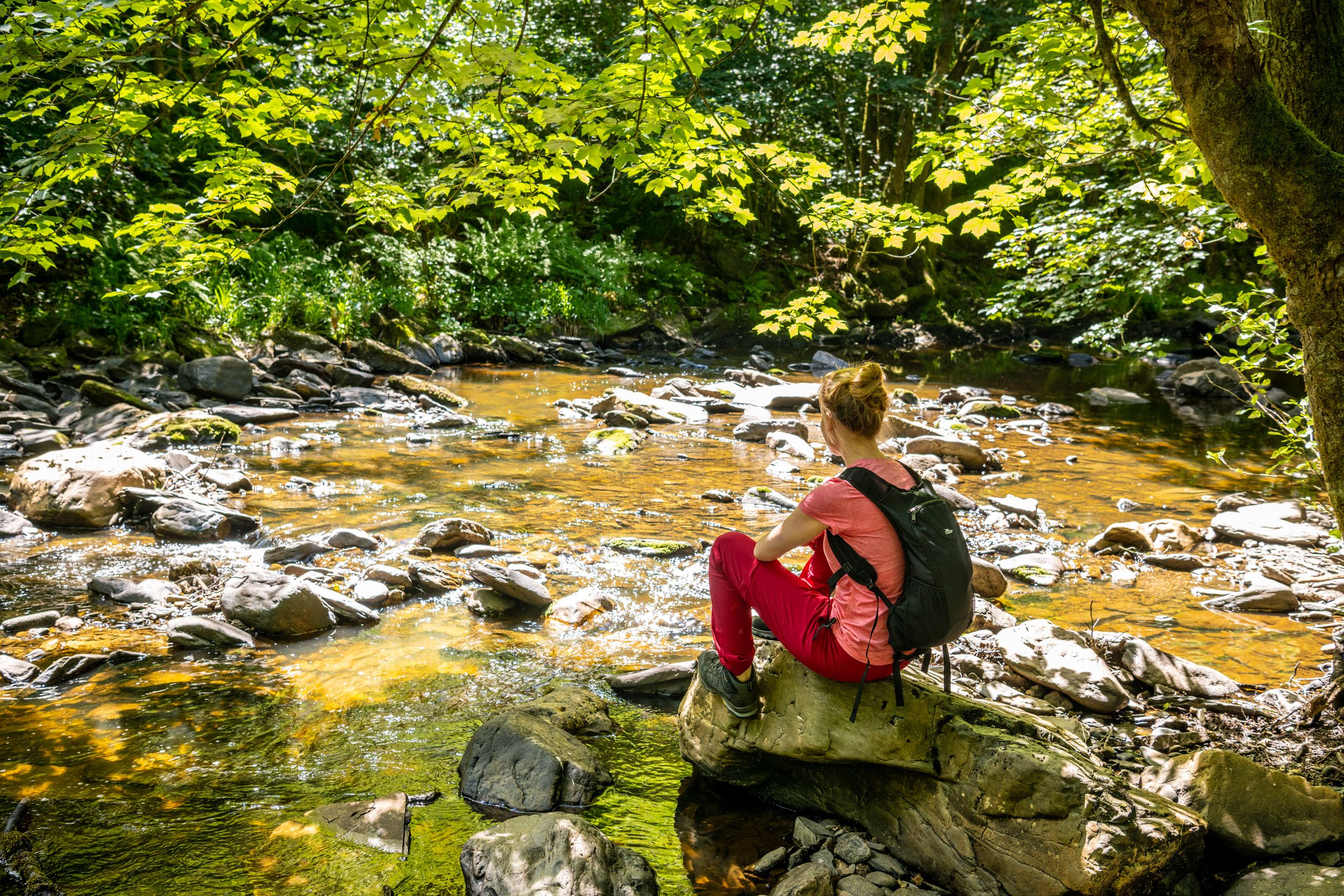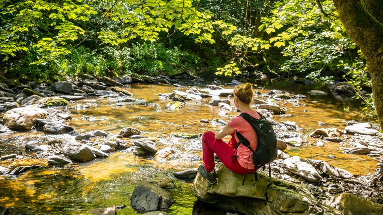 Puur natuur en plaatsen met een rijke geschiedenis kenmerken de wandelroute aan beide zijden van de Rur. Vanaf de parkeerplaats voor wandelaars leidt de route eerst terug naar de weg. Aan de andere kant herinneren de gebouwen van een voormalige lompenwolfabriek aan de tijd dat Monschau een van de lakenproductiecentra van Europa was. In het voormalige machinehuis is nu een beeldhouwersatelier gevestigd.